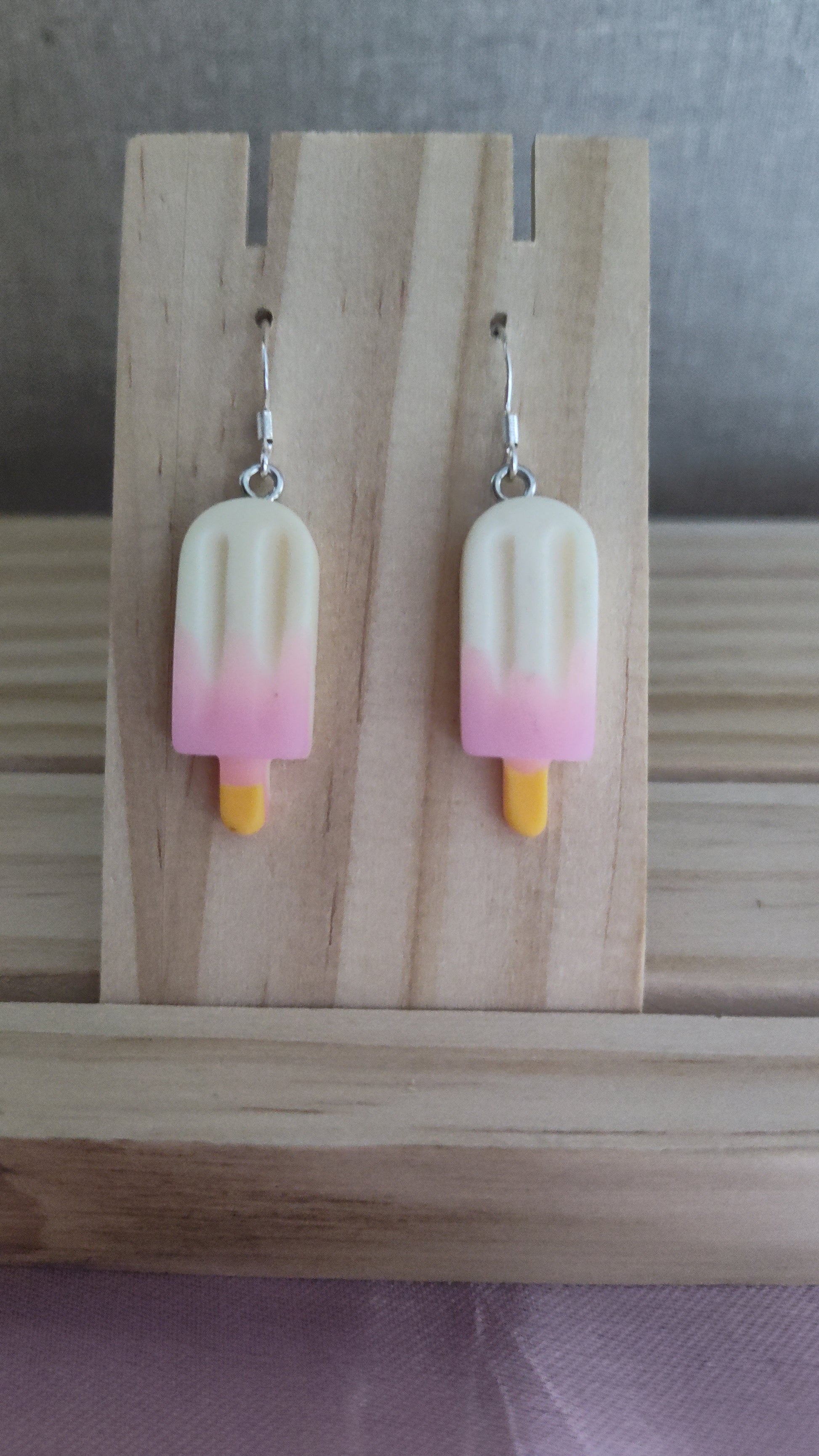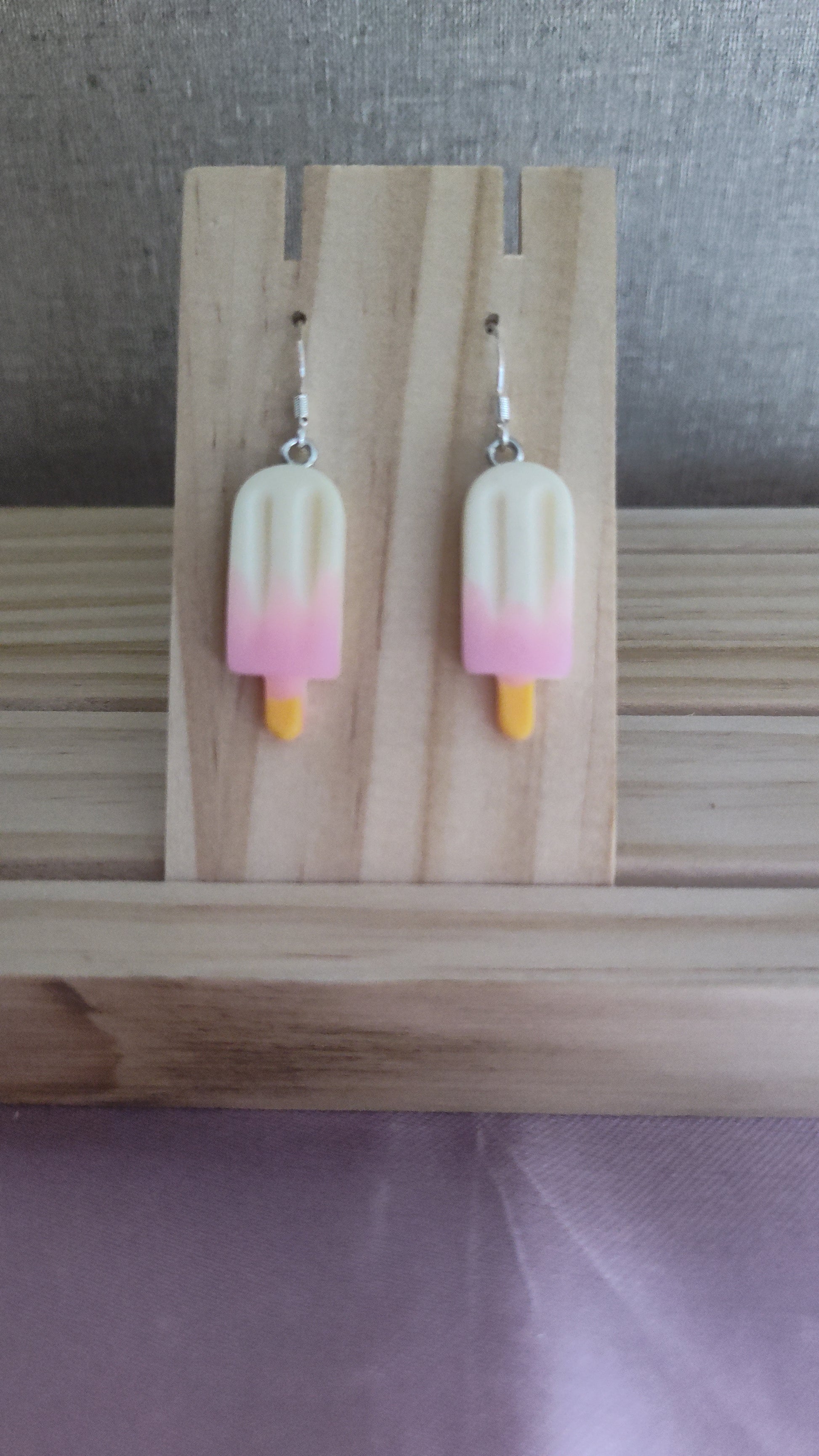 Cute and fun 3-D Popsicle earrings. Made with sterling silver plated hooks and hypoallergenic as well.