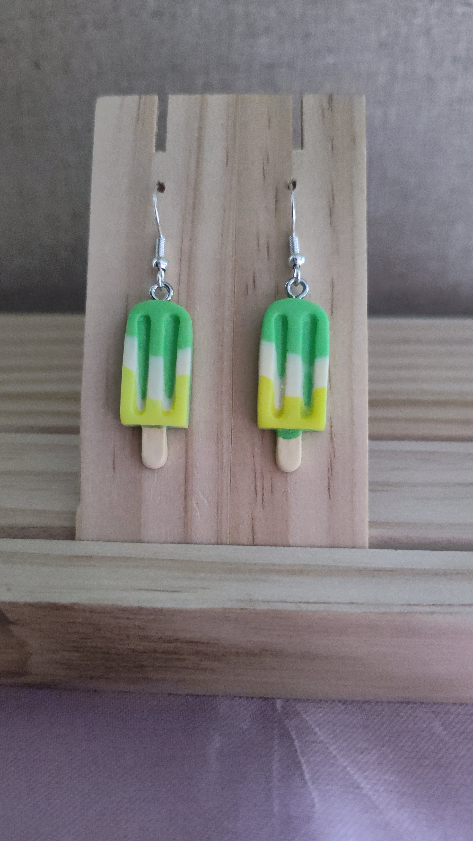 Cute 3D Popsicle earrings. Made with sterling silver plated hooks and hypoallergenic as well.