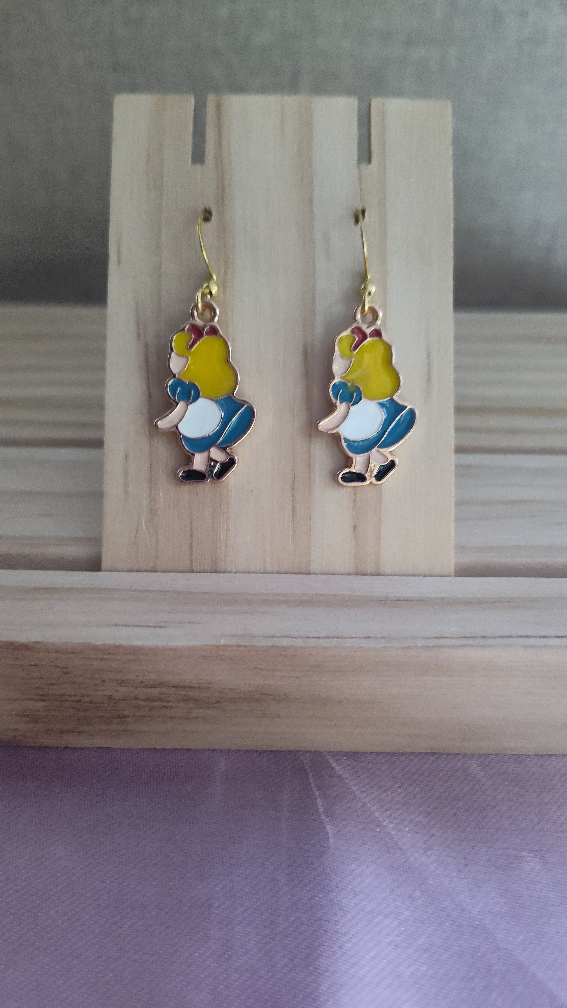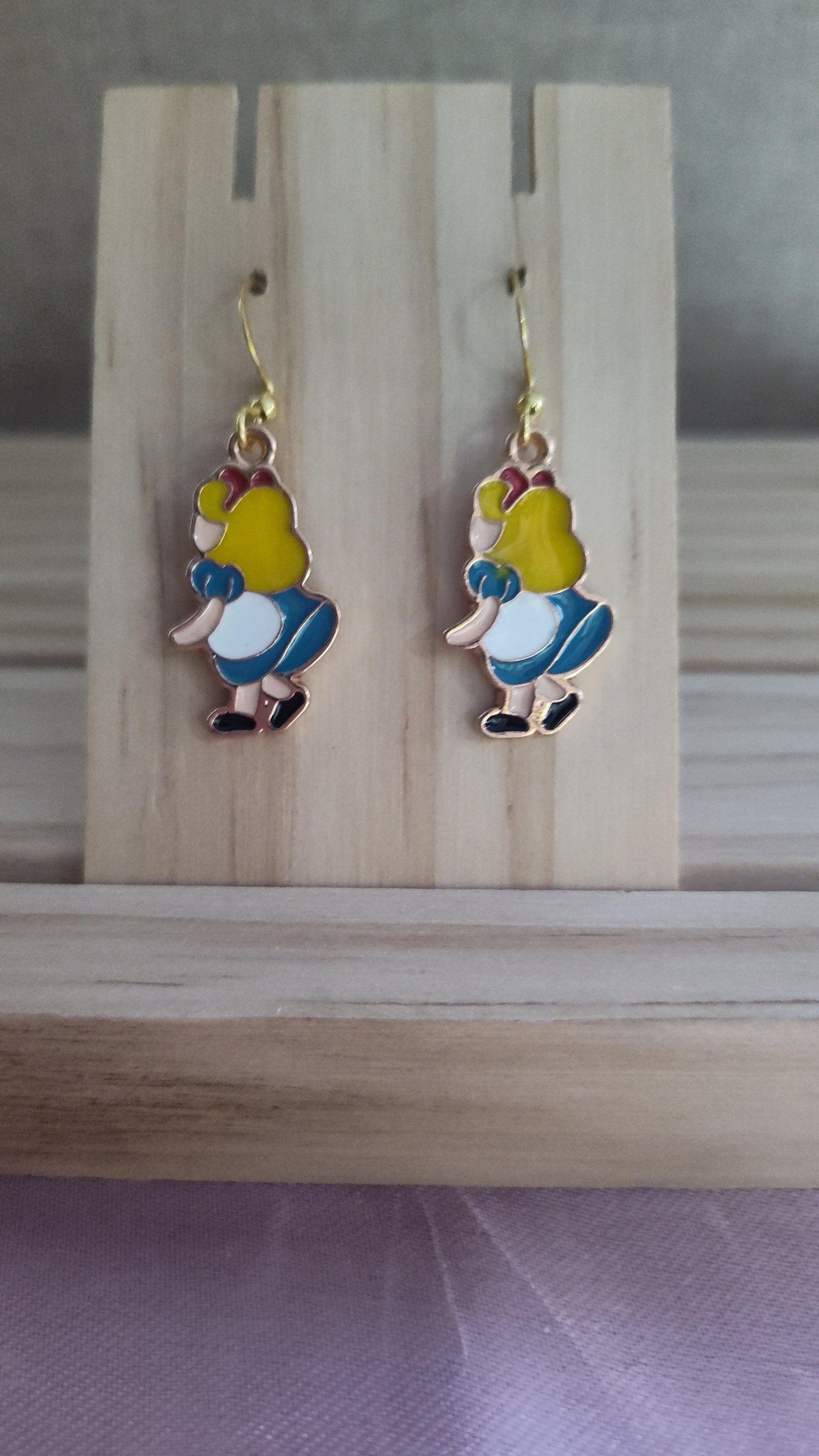 Cute Alice in Wonderland Earrings. Made with 18k gold sterling silver plated hooks and hypoallergenic as well.