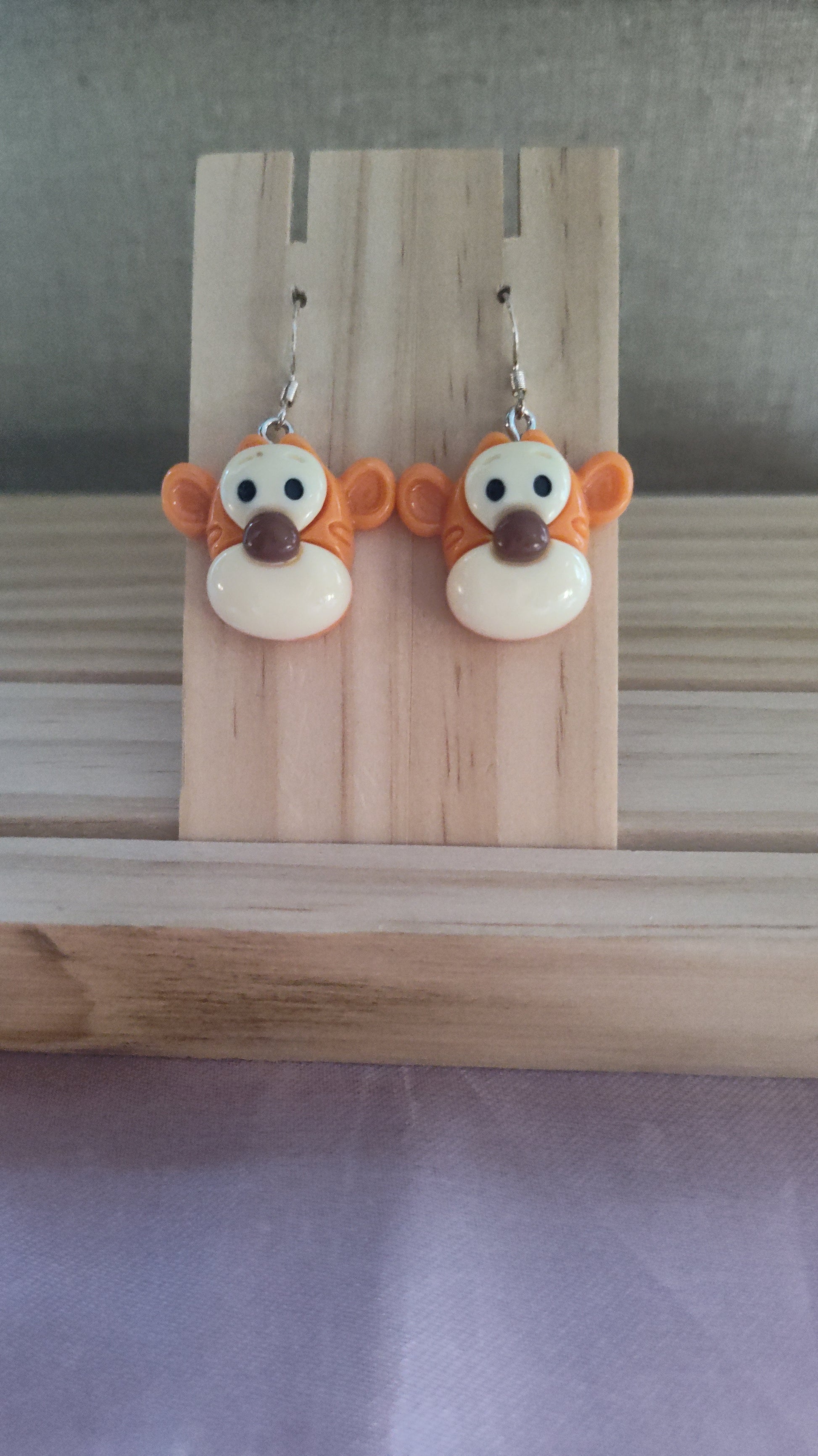 Adorable 3D Baby Tigger Earrings. Made with sterling silver plated hooks and hypoallergenic as well.