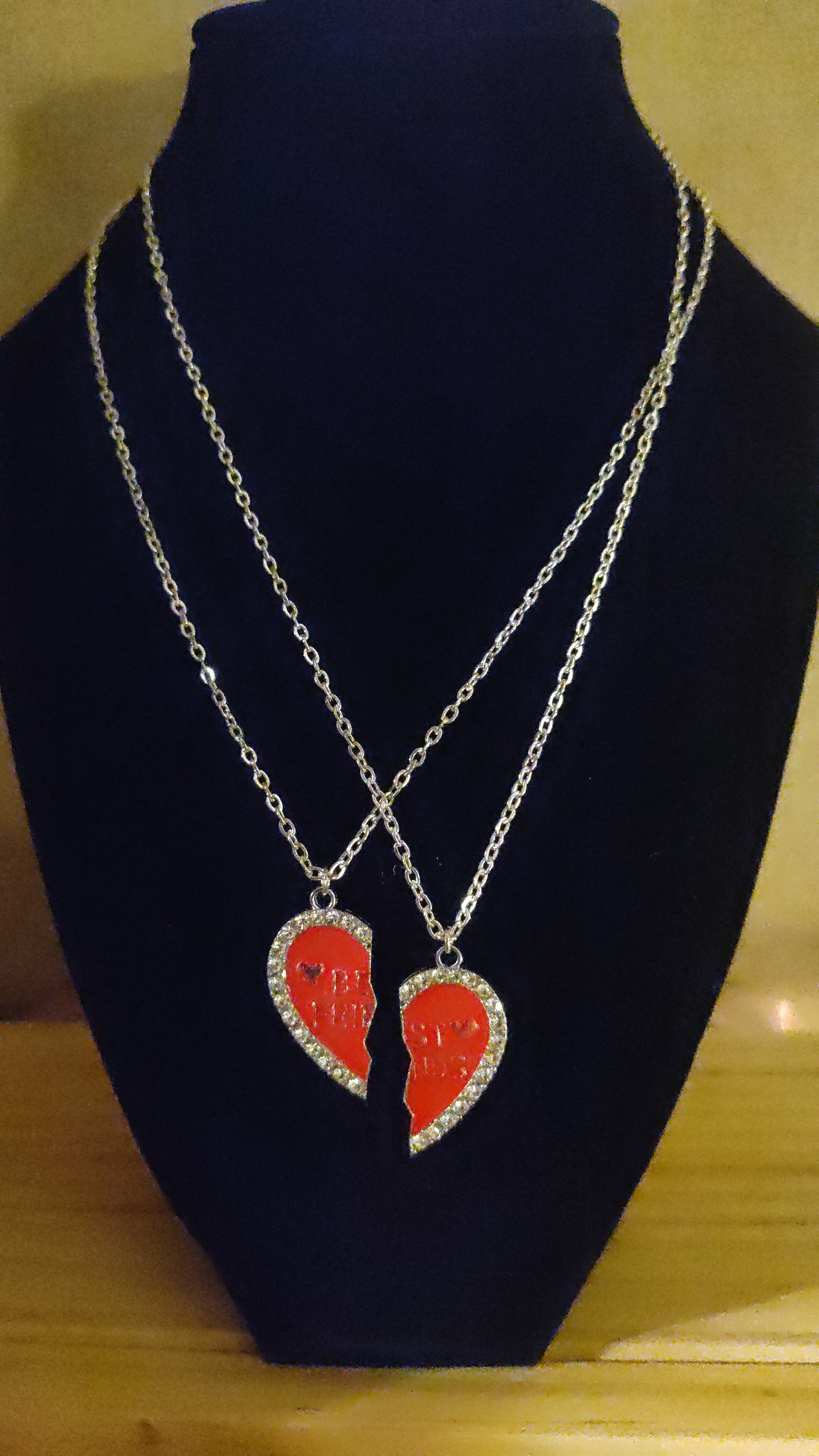 Beautiful red and silver Best Friend Necklaces with rhinestones.