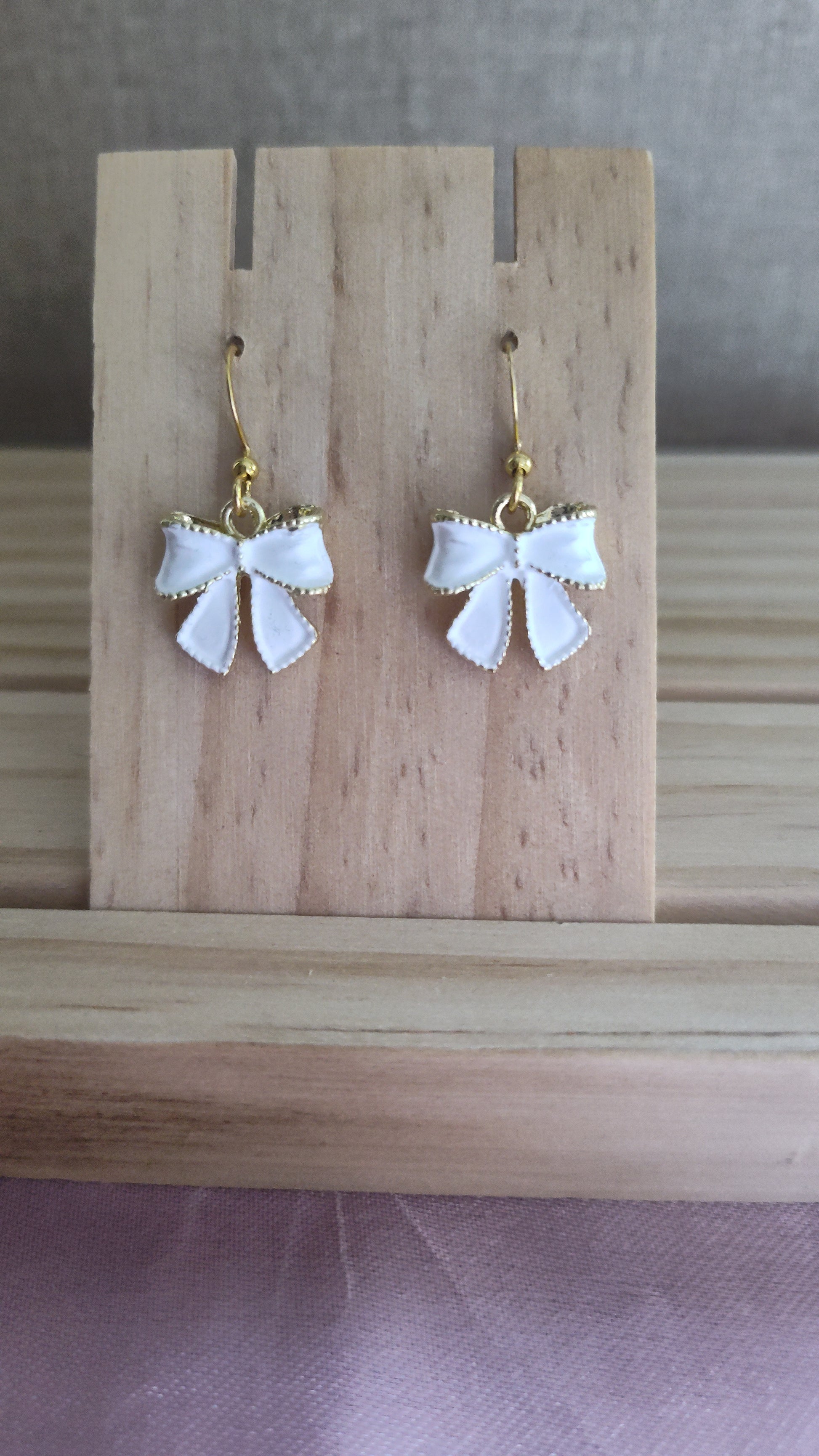 Beautiful 3D gold and white bow earrings. Made with 18k gold sterling silver plated hooks and hypoallergenic as well.