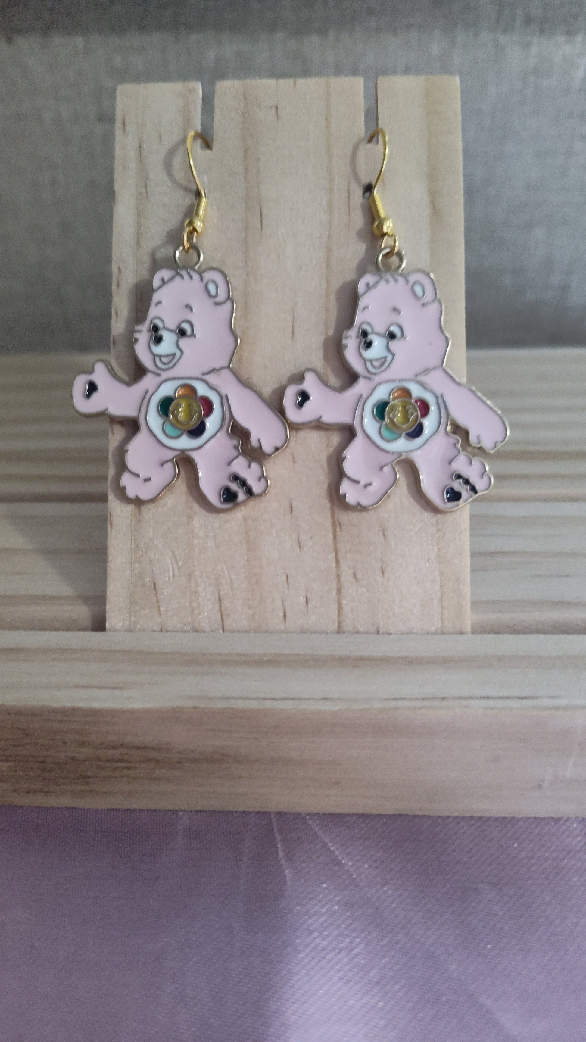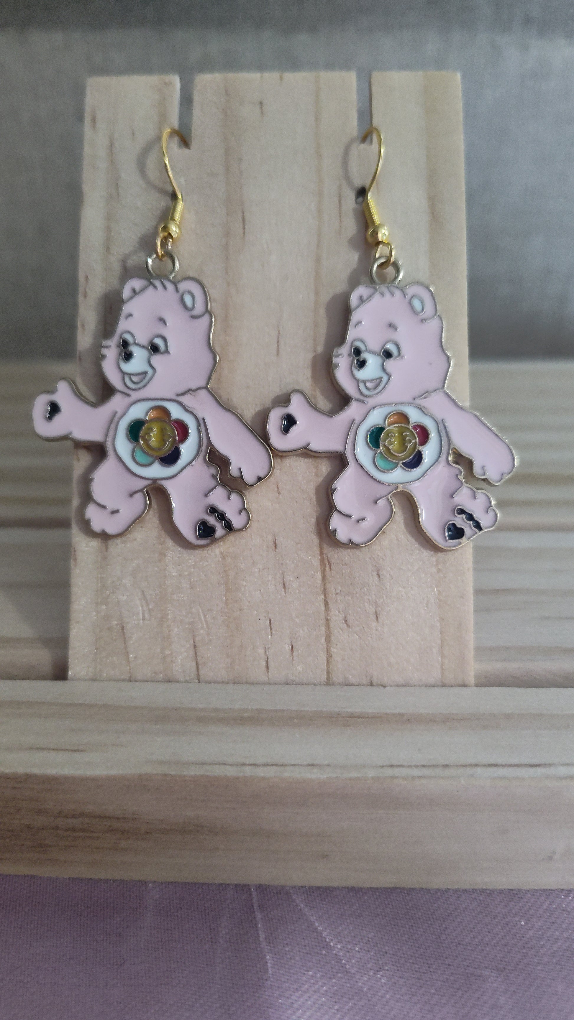 Large cute Pink Care Bear Earrings, they are made with 18k gold sterling silver plated hooks and hypoallergenic as well.