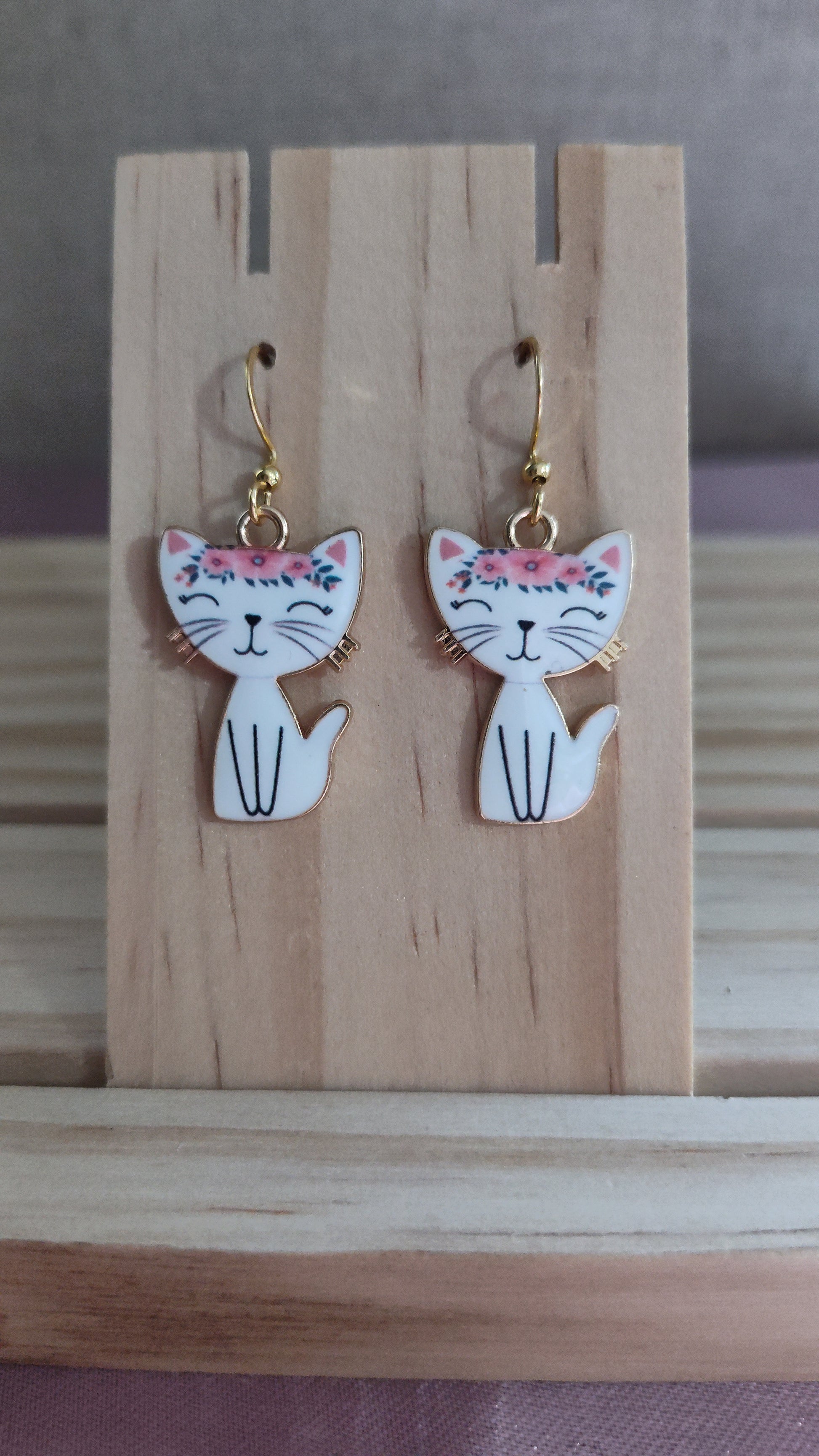 Adorable cat earrings. Made with 18k gold sterling silver plated hooks and hypoallergenic as well.