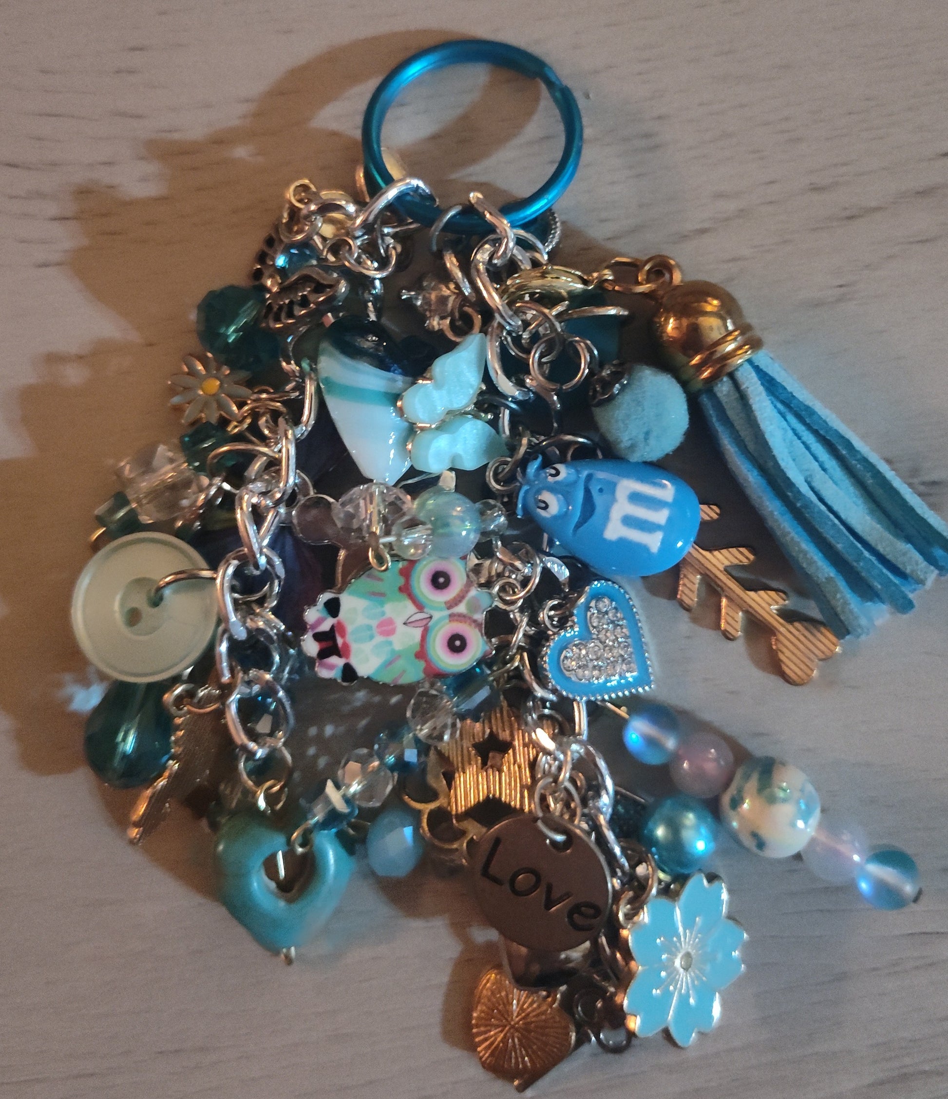 Super cute and fun handmade chunky blue keychain with a mix of fun girly charms and beads. Can also be used for bag bling.