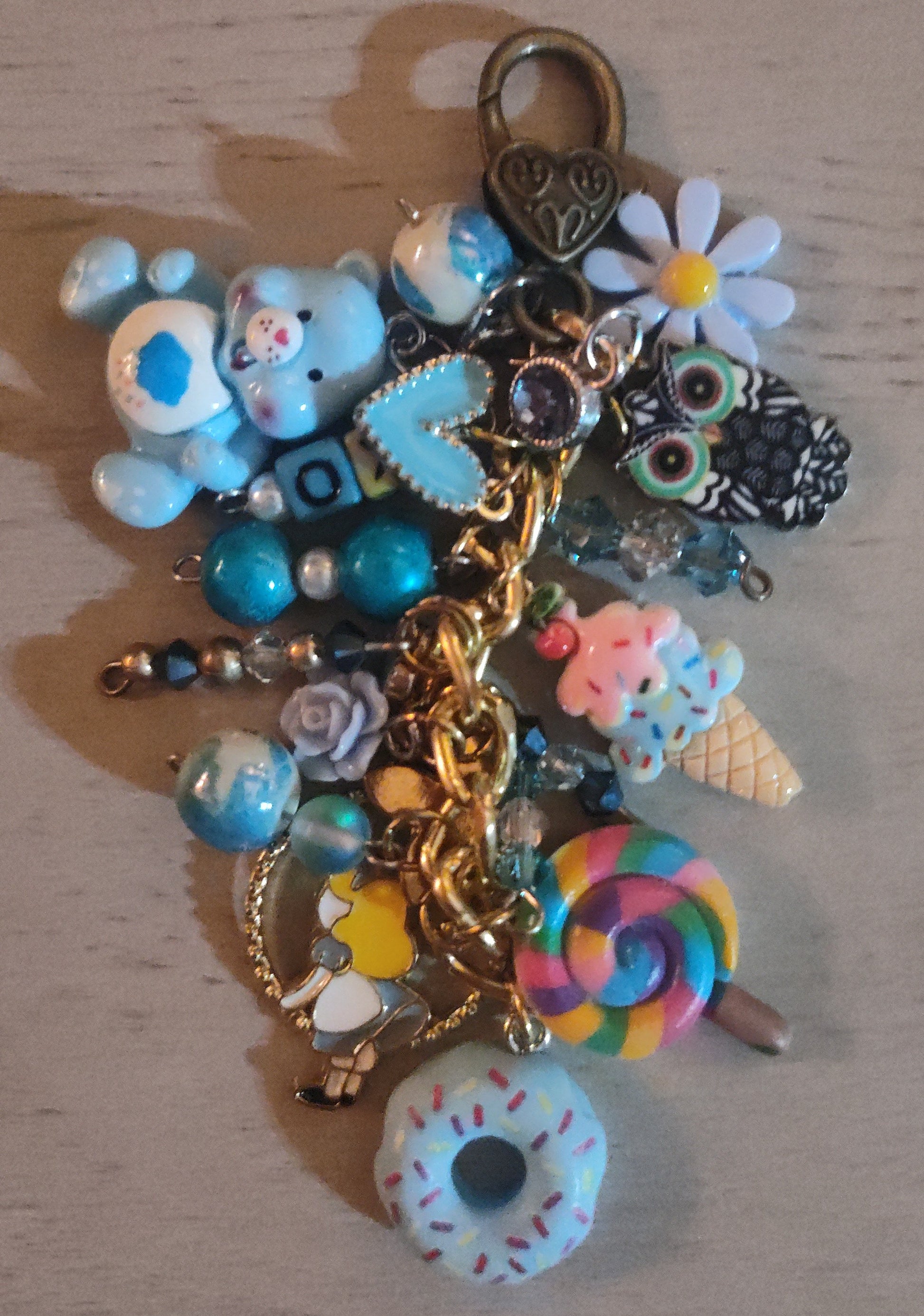 Super cute and fun handmade chunky blue keychain with a mix of fun girly charms and beads. Can also be used for bag bling.