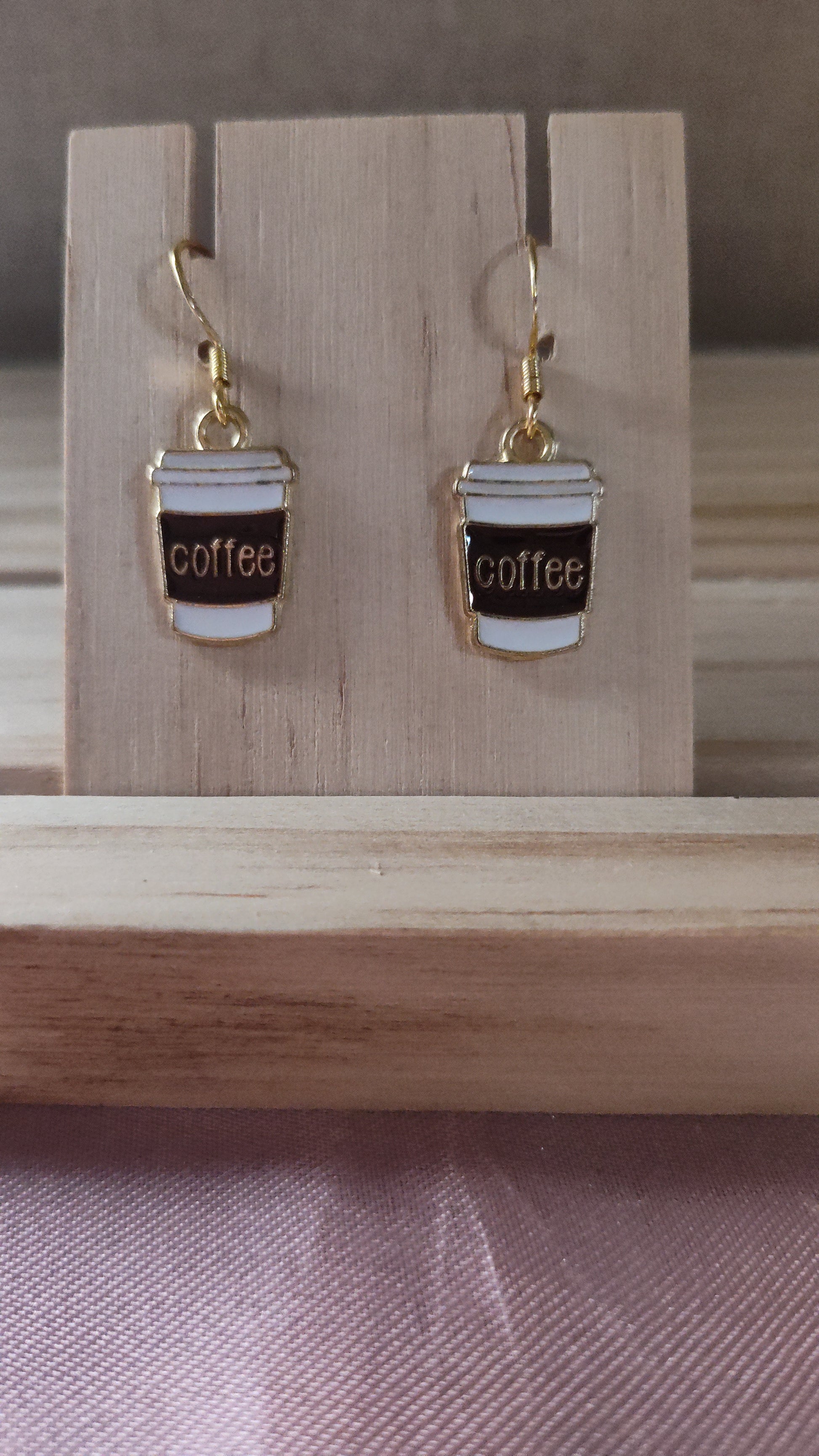 Cute coffee cup earrings. Made with 18k gold sterling silver plated hooks and hypoallergenic as well.