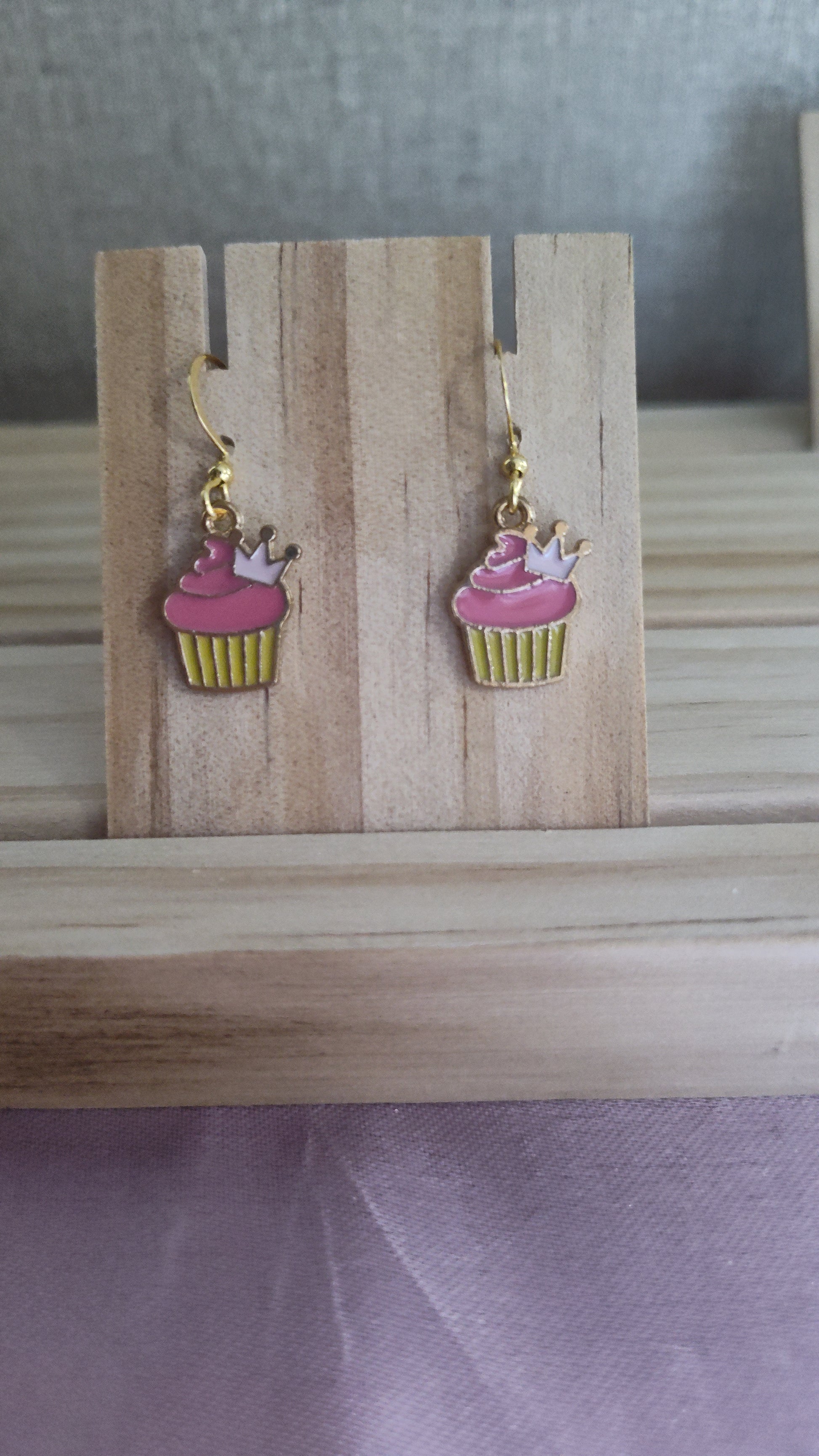 Cute cupcake with crown earrings. Made with 18k gold sterling silver plated hooks and hypoallergenic as well.