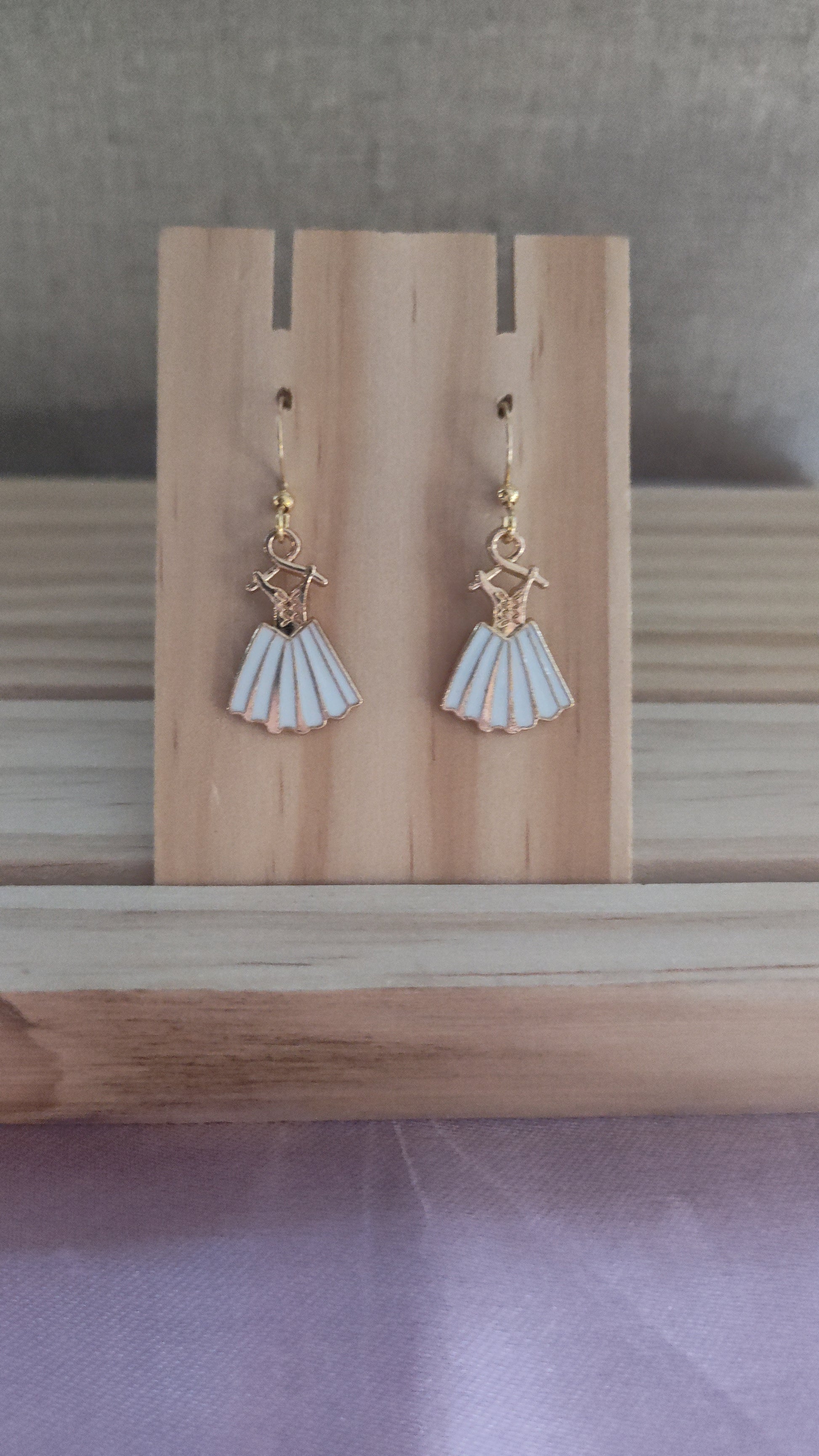 Cute white and gold dress earrings. Made with 18k gold sterling silver plated hooks and hypoallergenic as well.