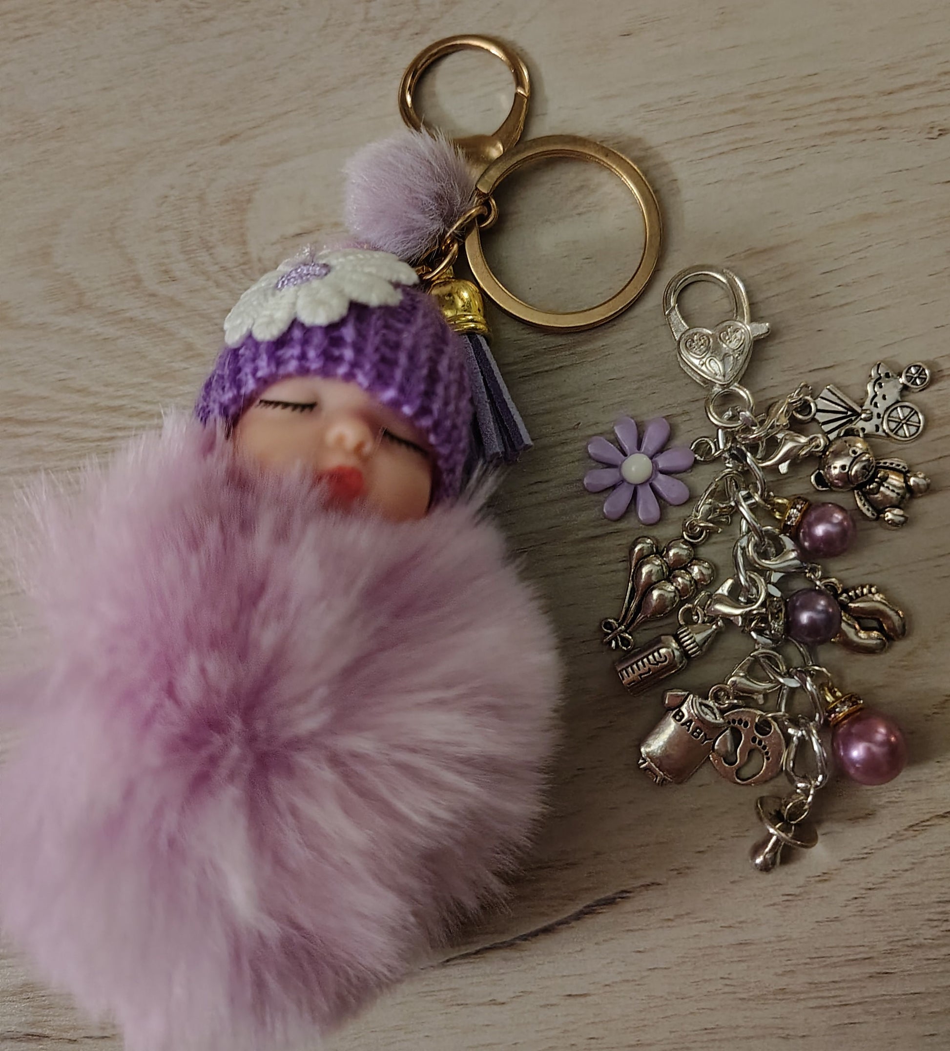 These are so adorable and add a little bit of cuteness to baby's diaper bag. The handmade baby theme keychain is removable from the babydoll.