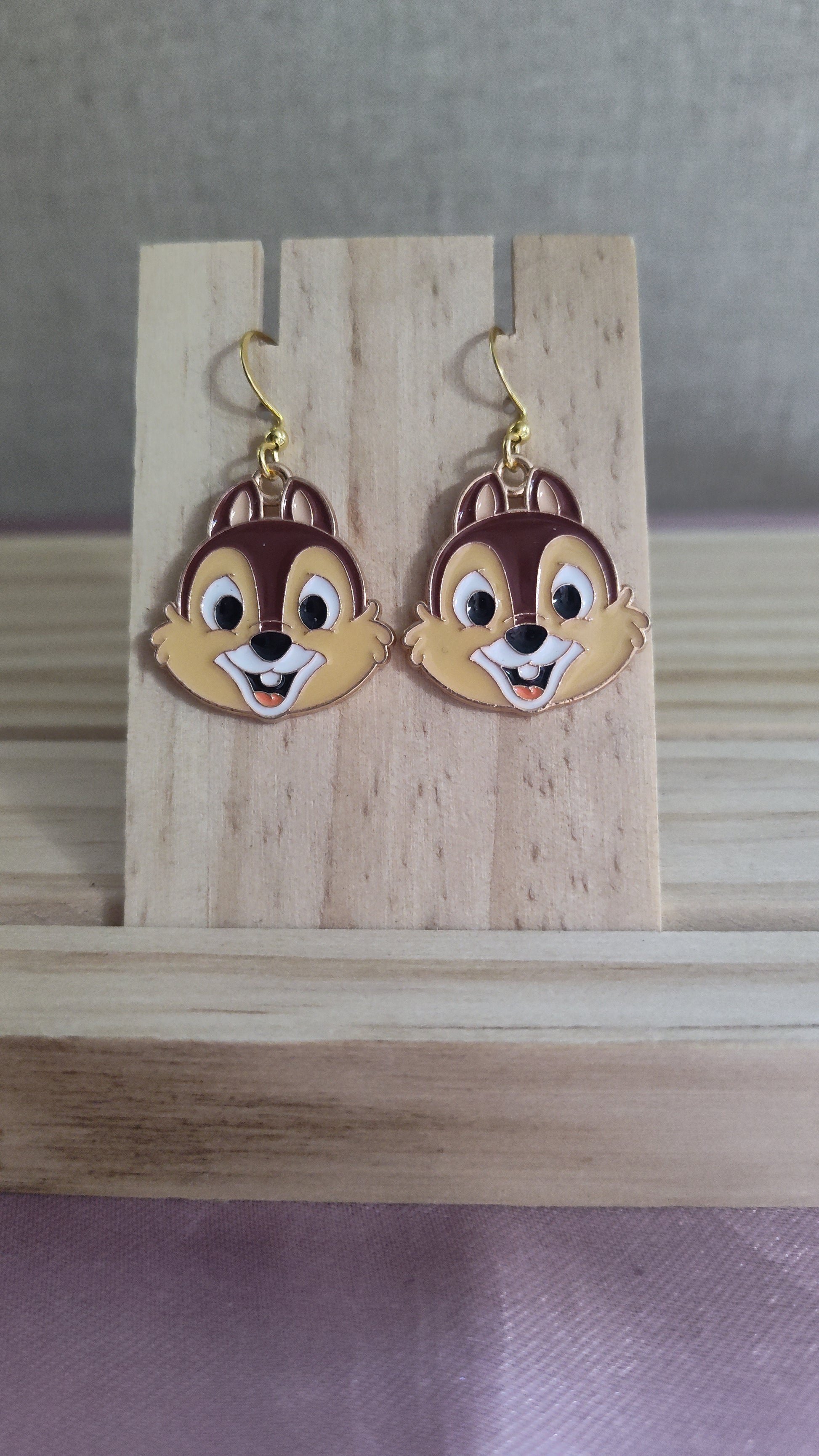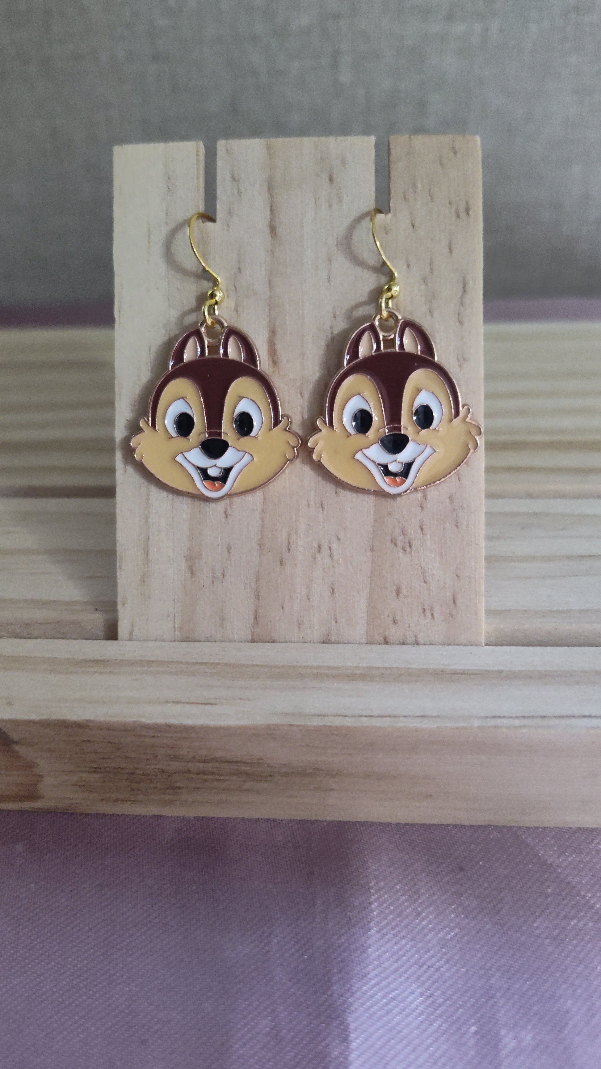 Cute Chip from Chip & Dale Disney earrings. Made with 18k gold plated hooks and hypoallergenic as well.