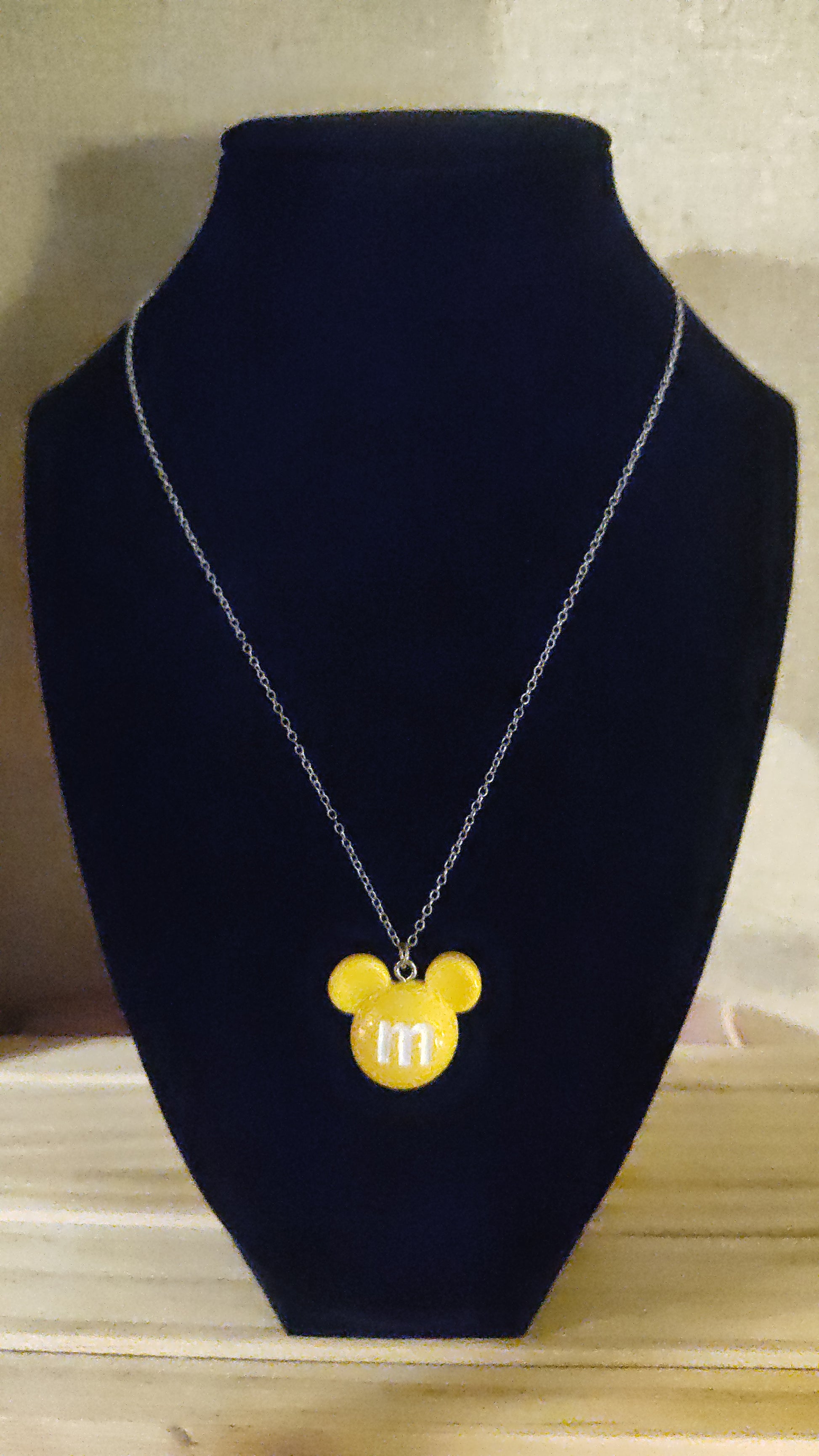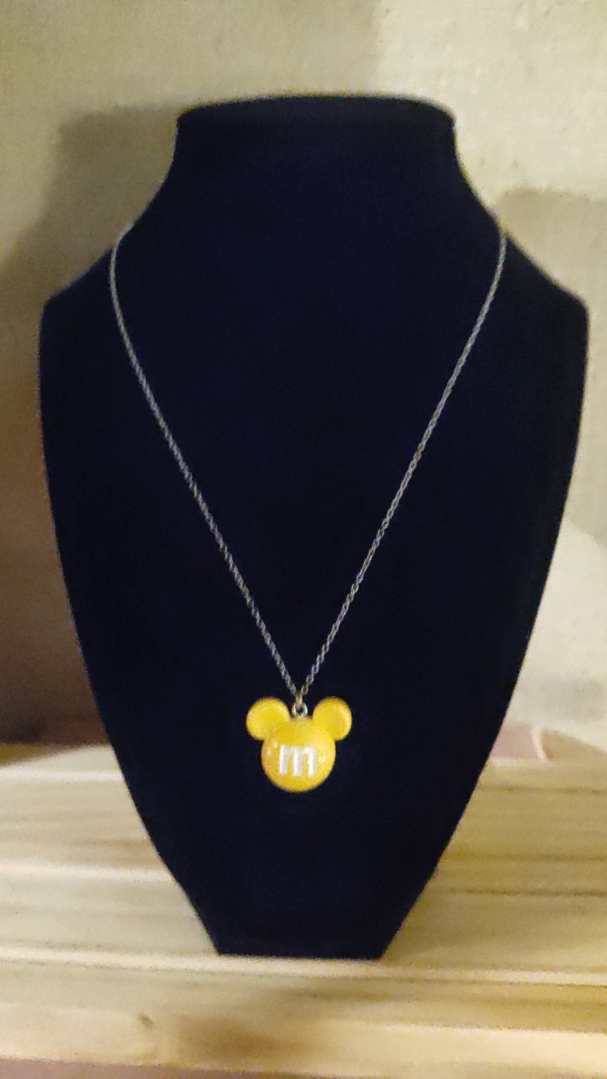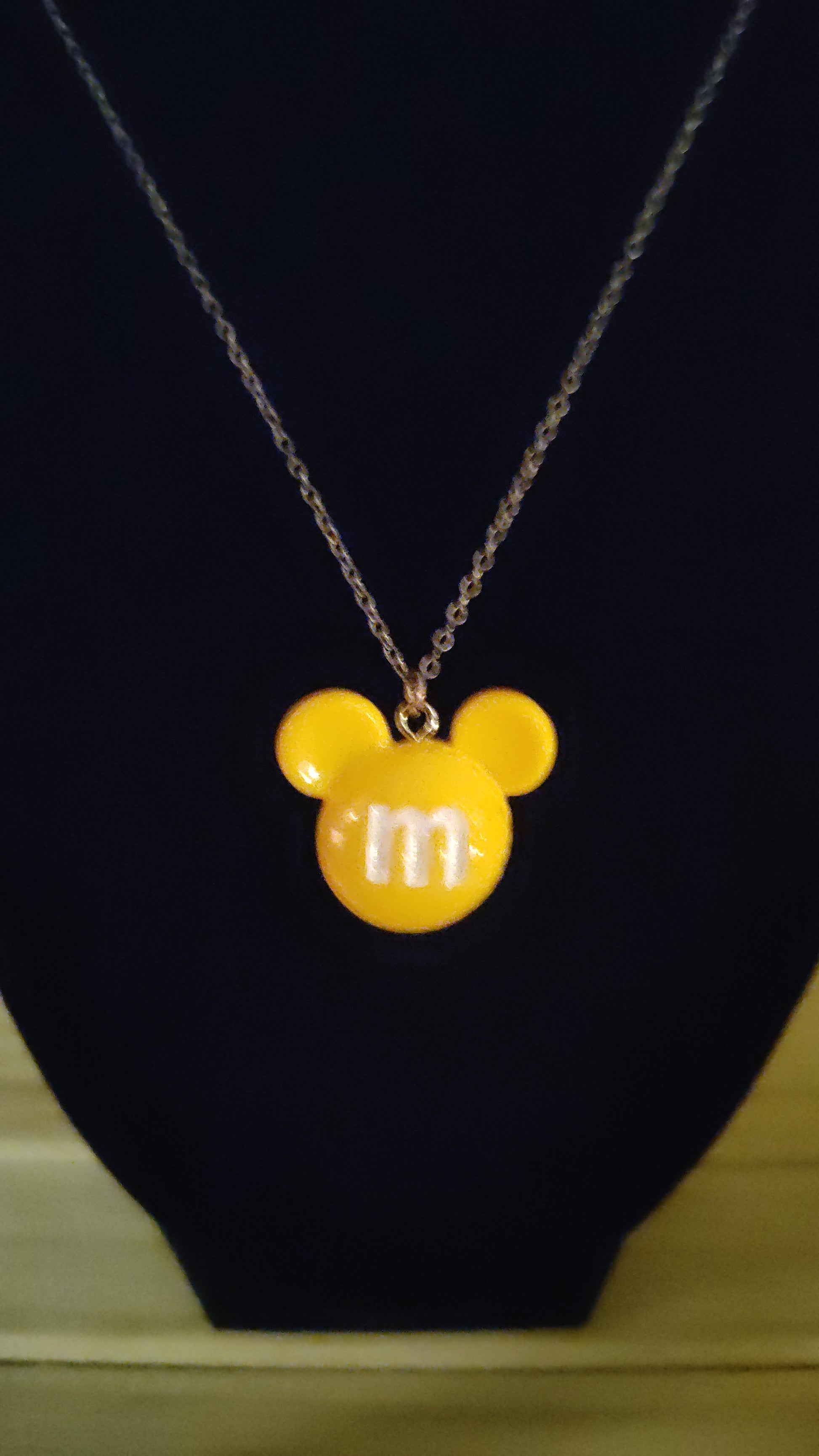 Adorable 3D Yellow Mickey Mouse head necklace.