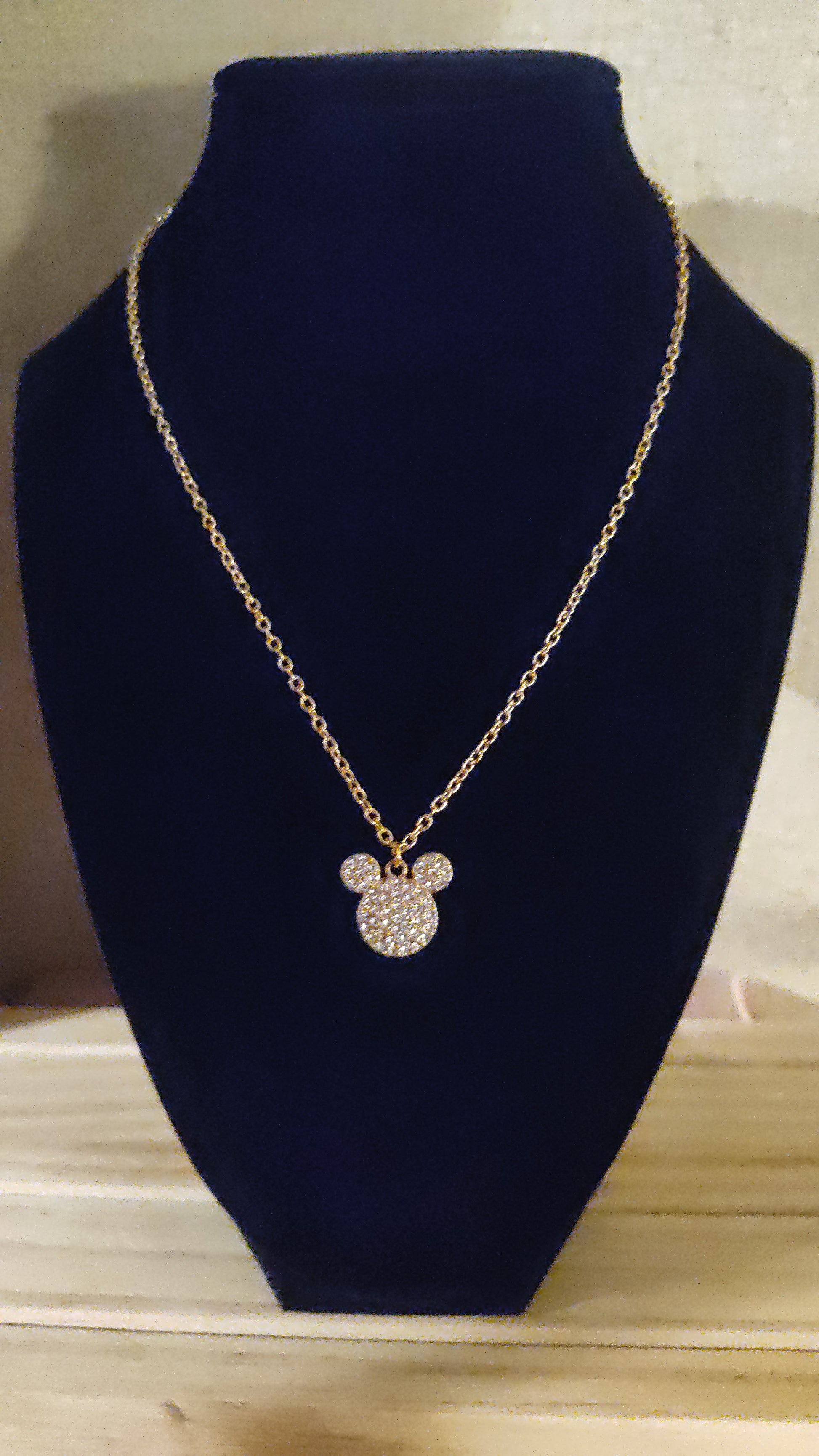 Beautiful gold Mickey Mouse necklace with rhinestones.