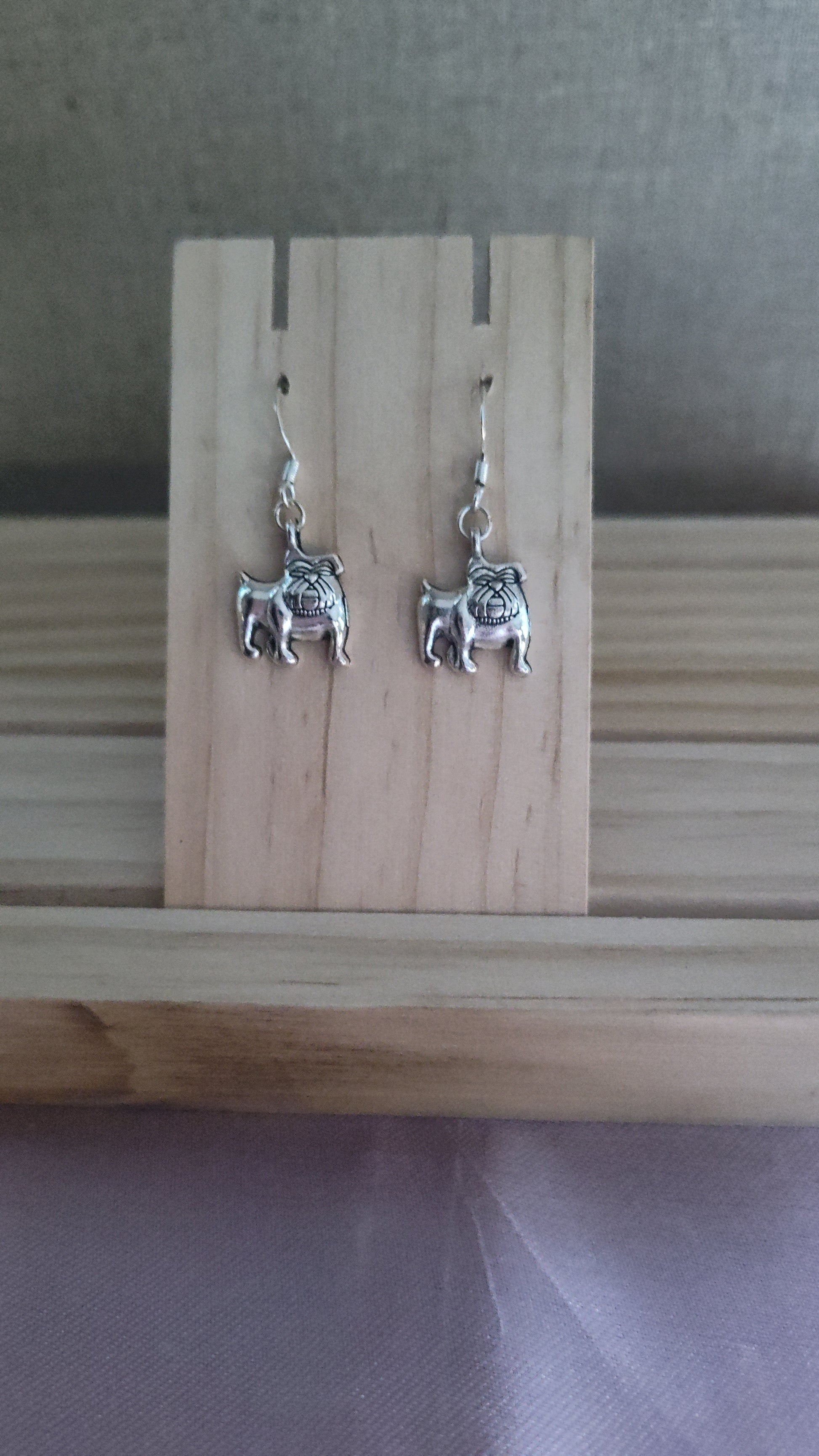 Cute silver dog earrings. Made with sterling silver plated hooks and hypoallergenic as well.