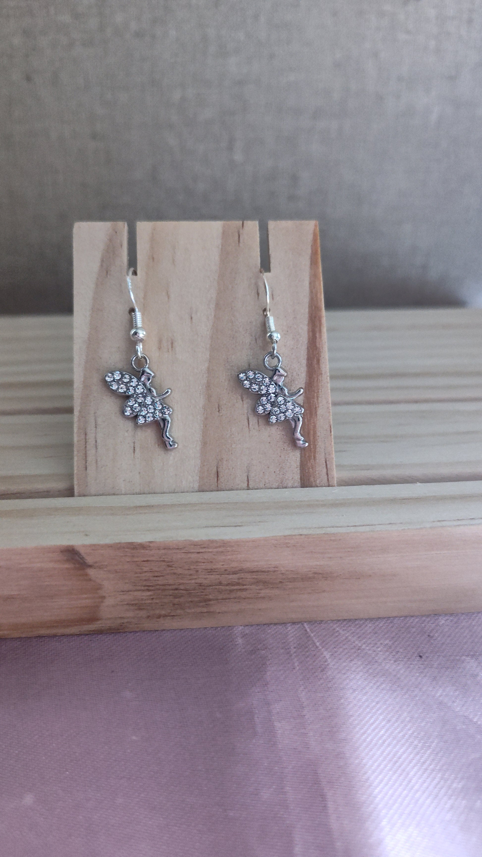 Beautiful silver fairy earrings with rhinestones. Made with sterling silver plated hooks and hypoallergenic as well.