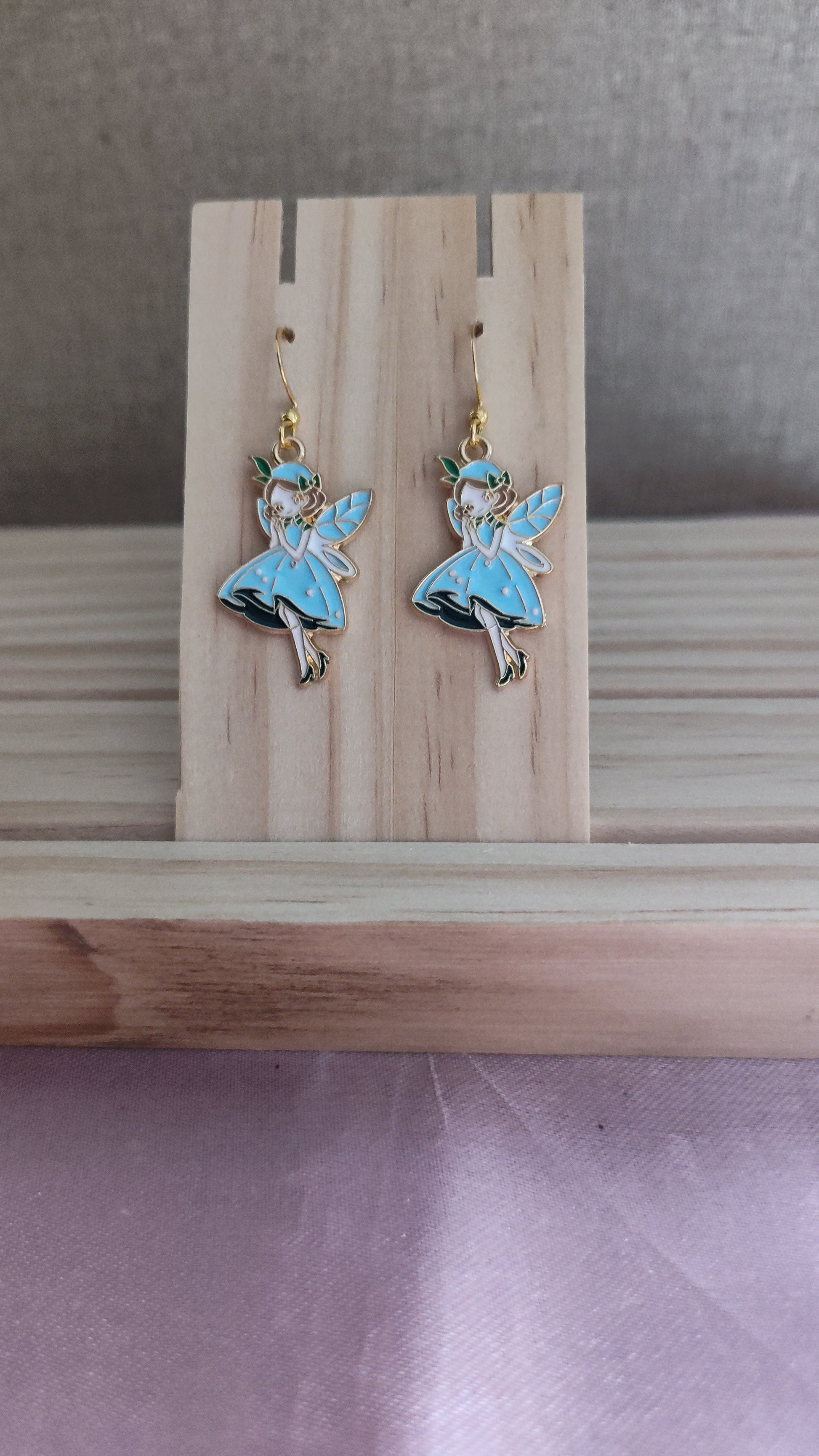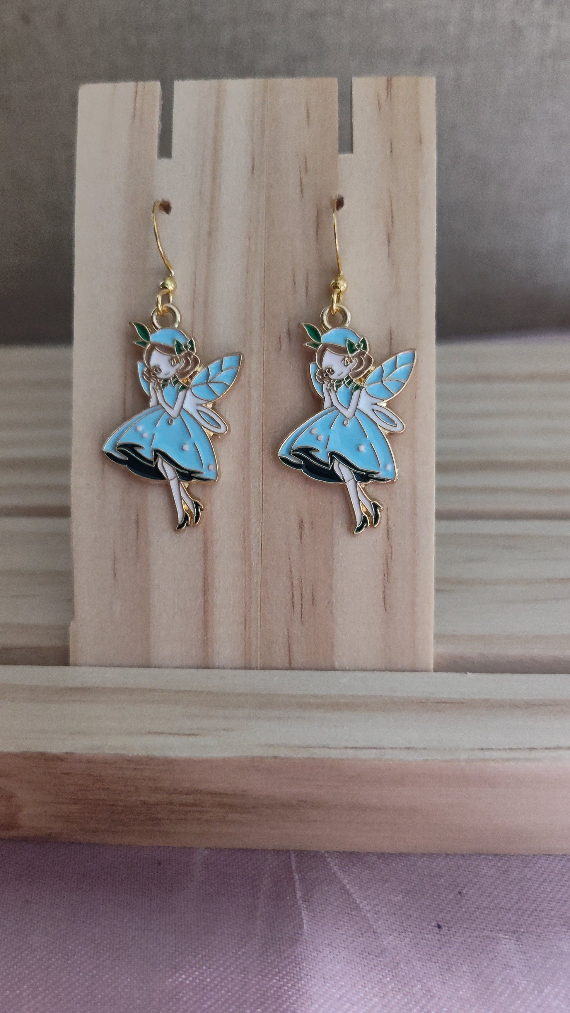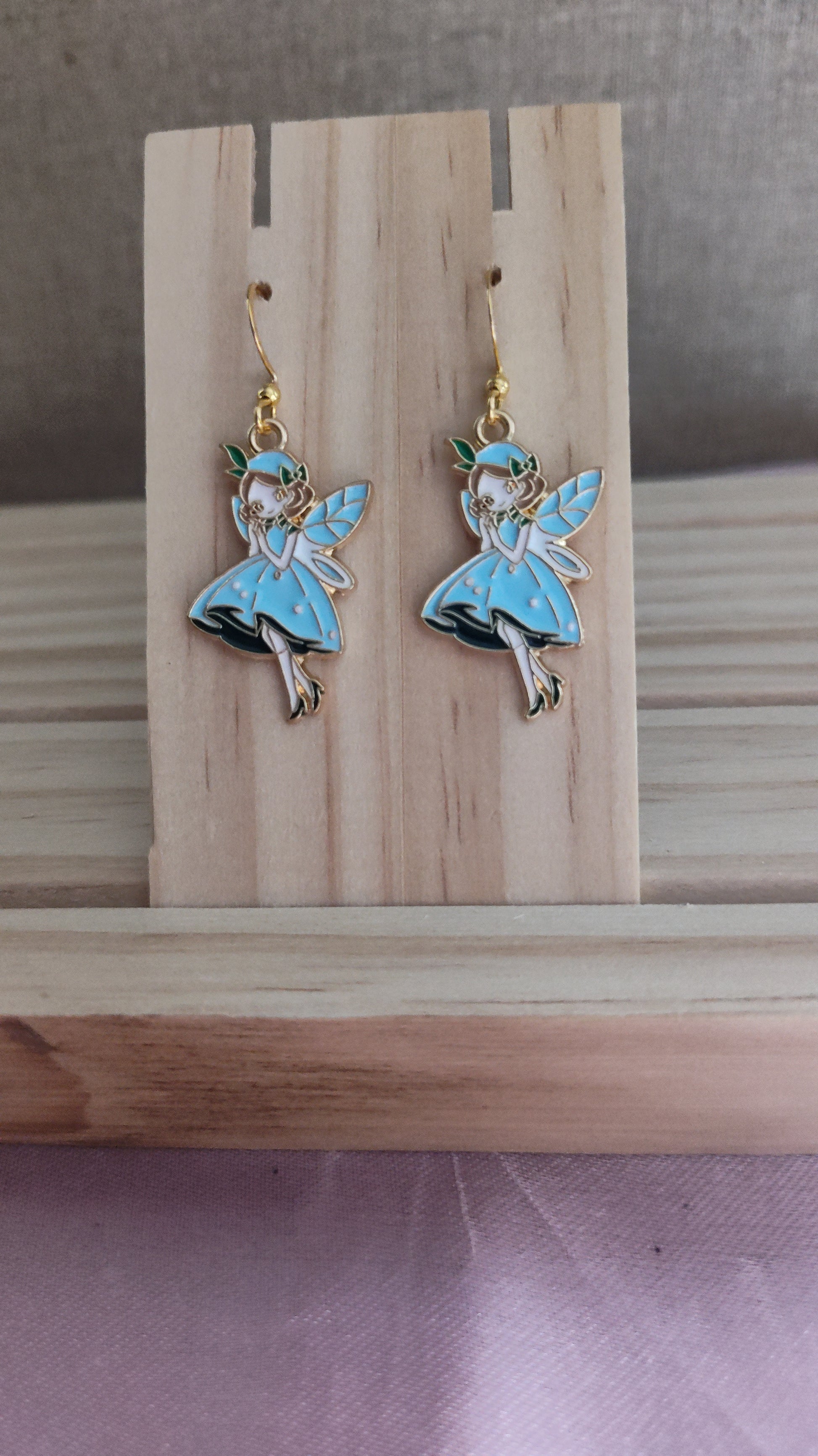 Adorable blue fairy earrings, made with 18k gold sterling silver plated hooks and hypoallergenic as well.