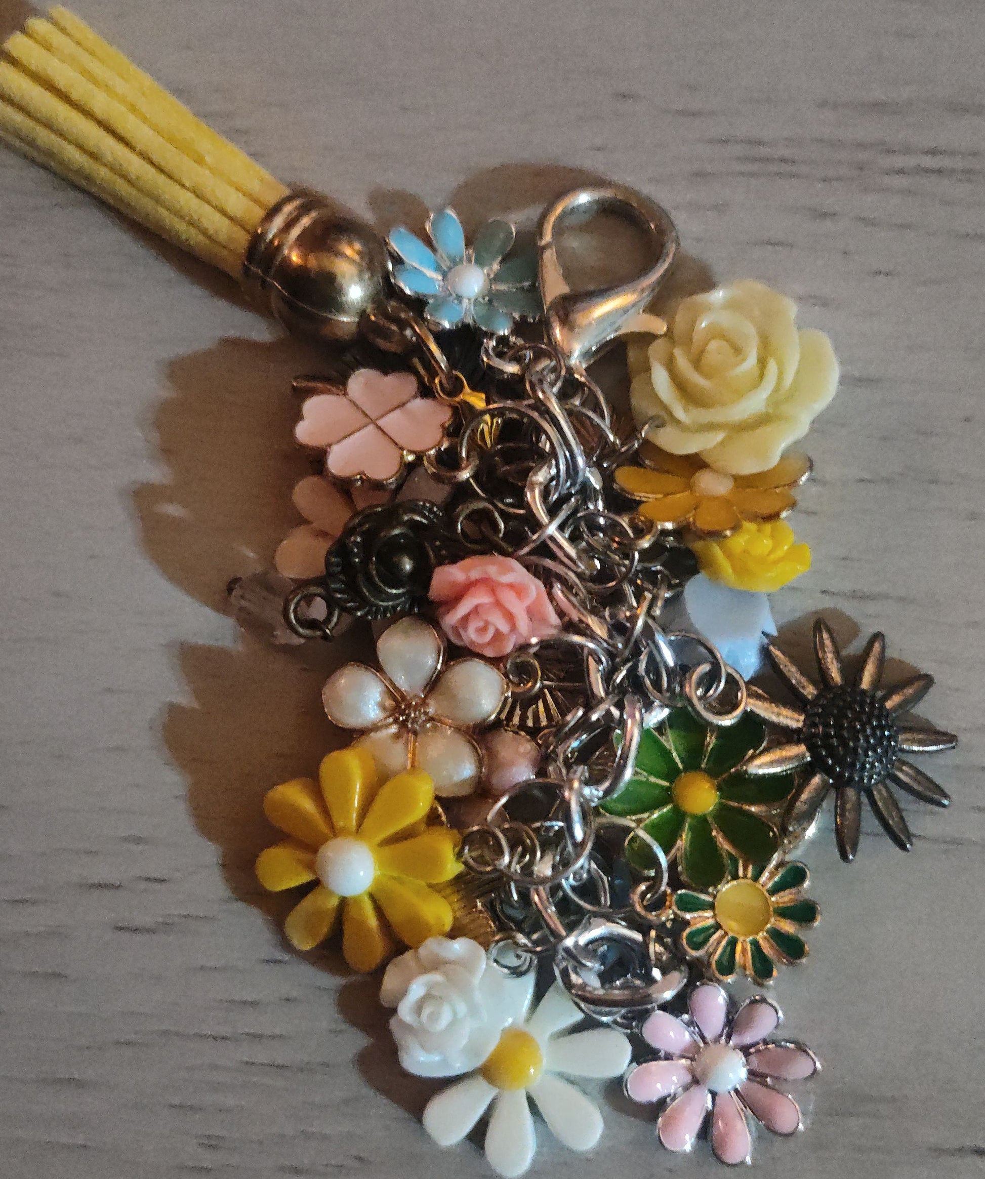 Beautiful handmade chunky flower keychain or bag bling with a mix of different flower charms.