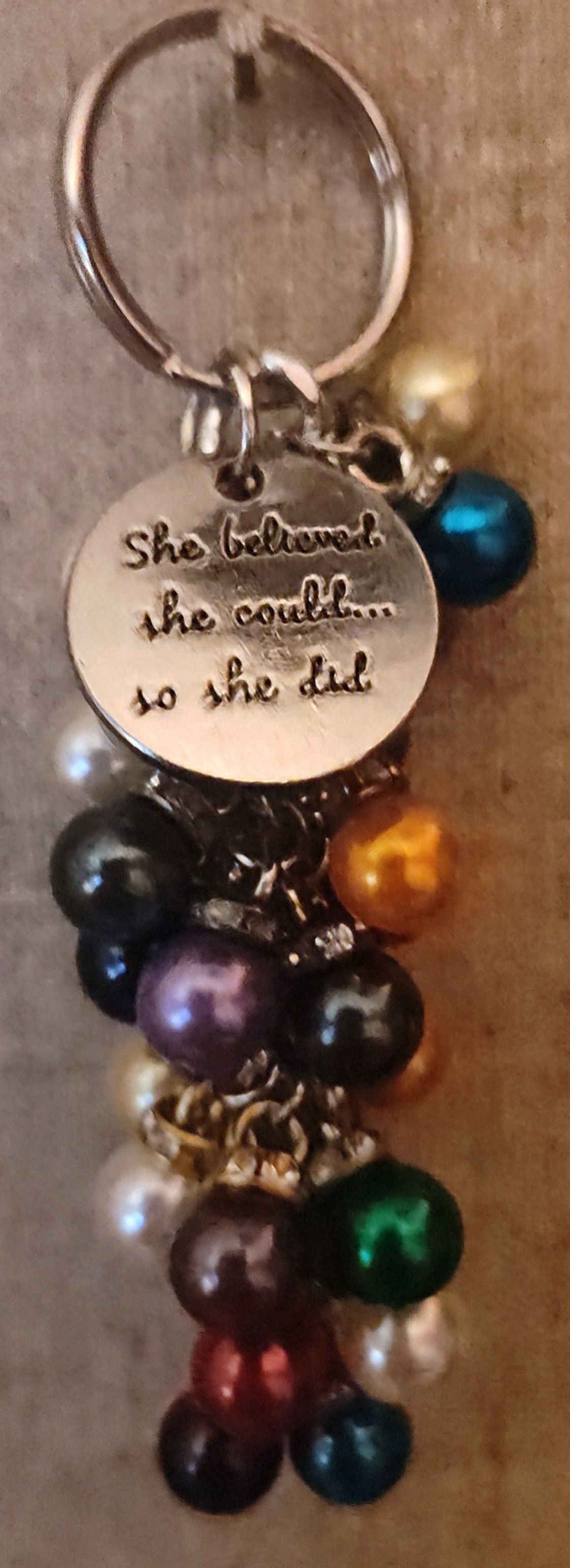 Beautiful handmade chunky faux pearl keychain or bag bling with an inspirational charm.