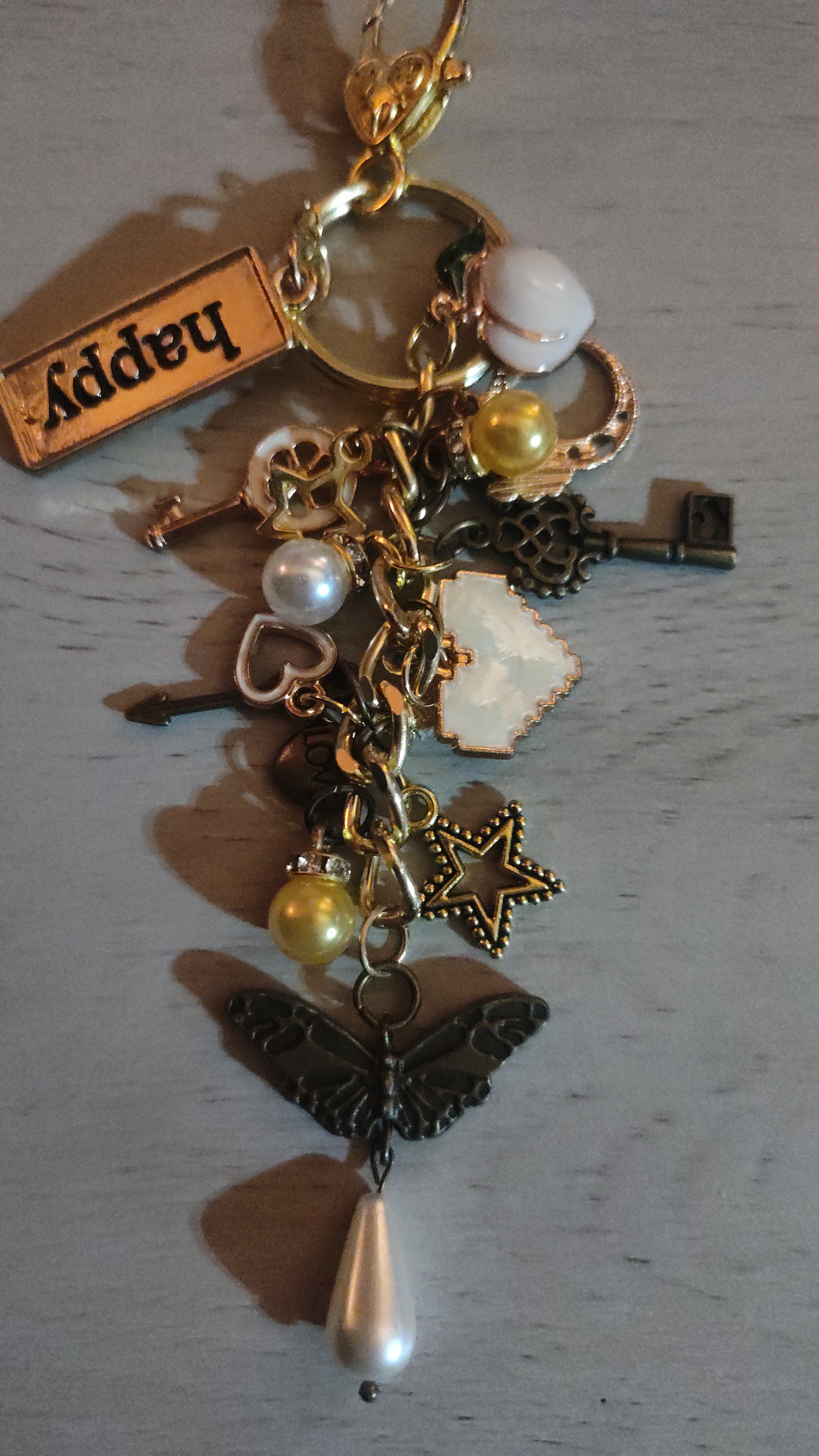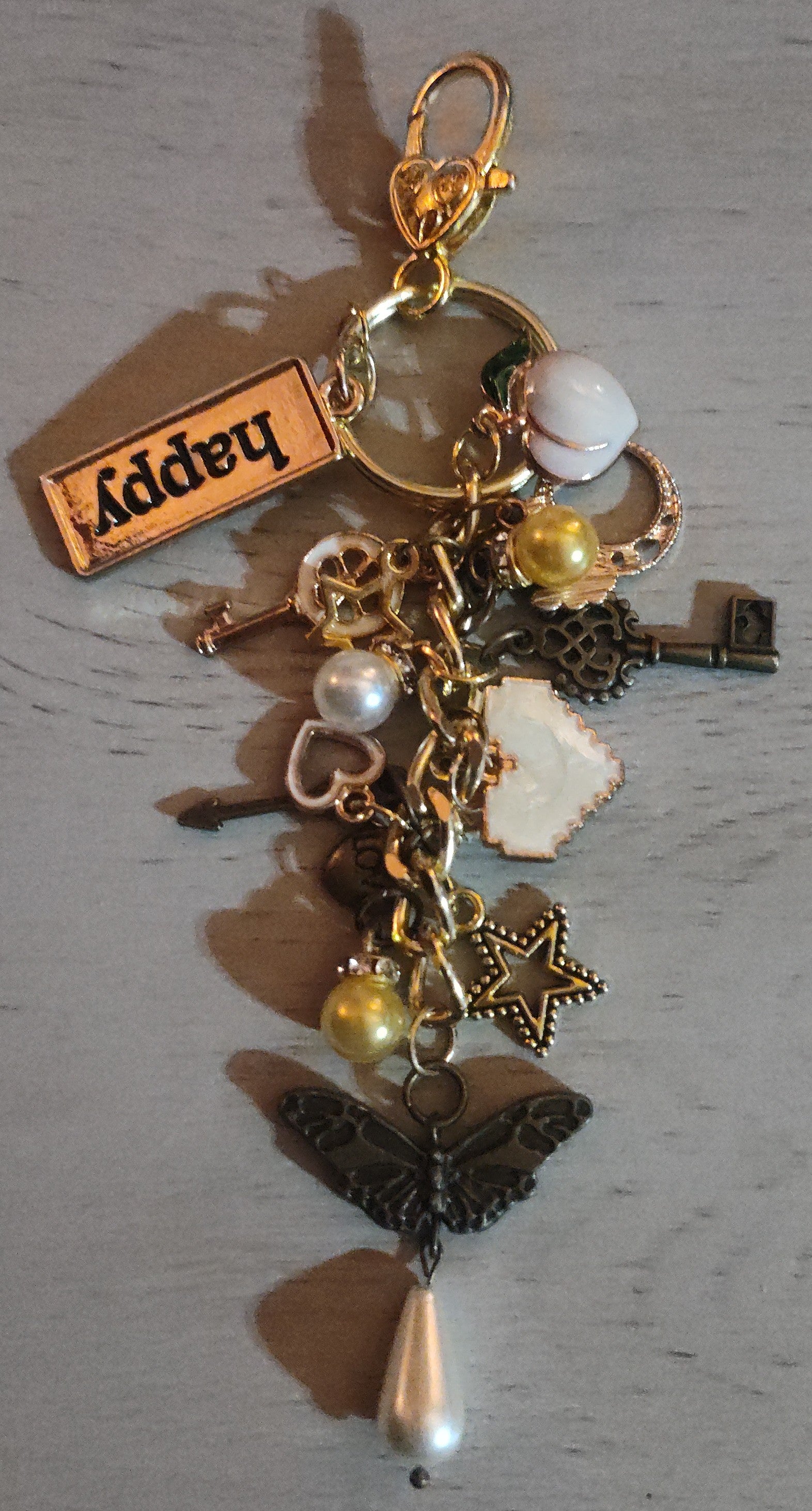 Beautiful handmade chunky yellow keychain or bag bling with a mix of different charms and beads.