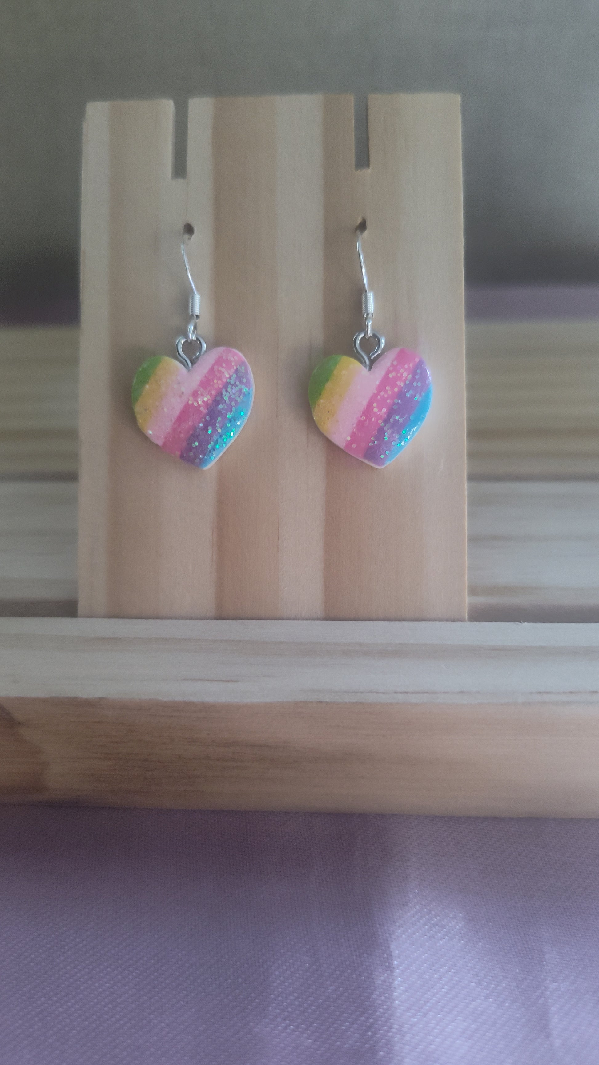 Cute rainbow colored heart earrings. Made with sterling silver plated hooks and hypoallergenic as well.