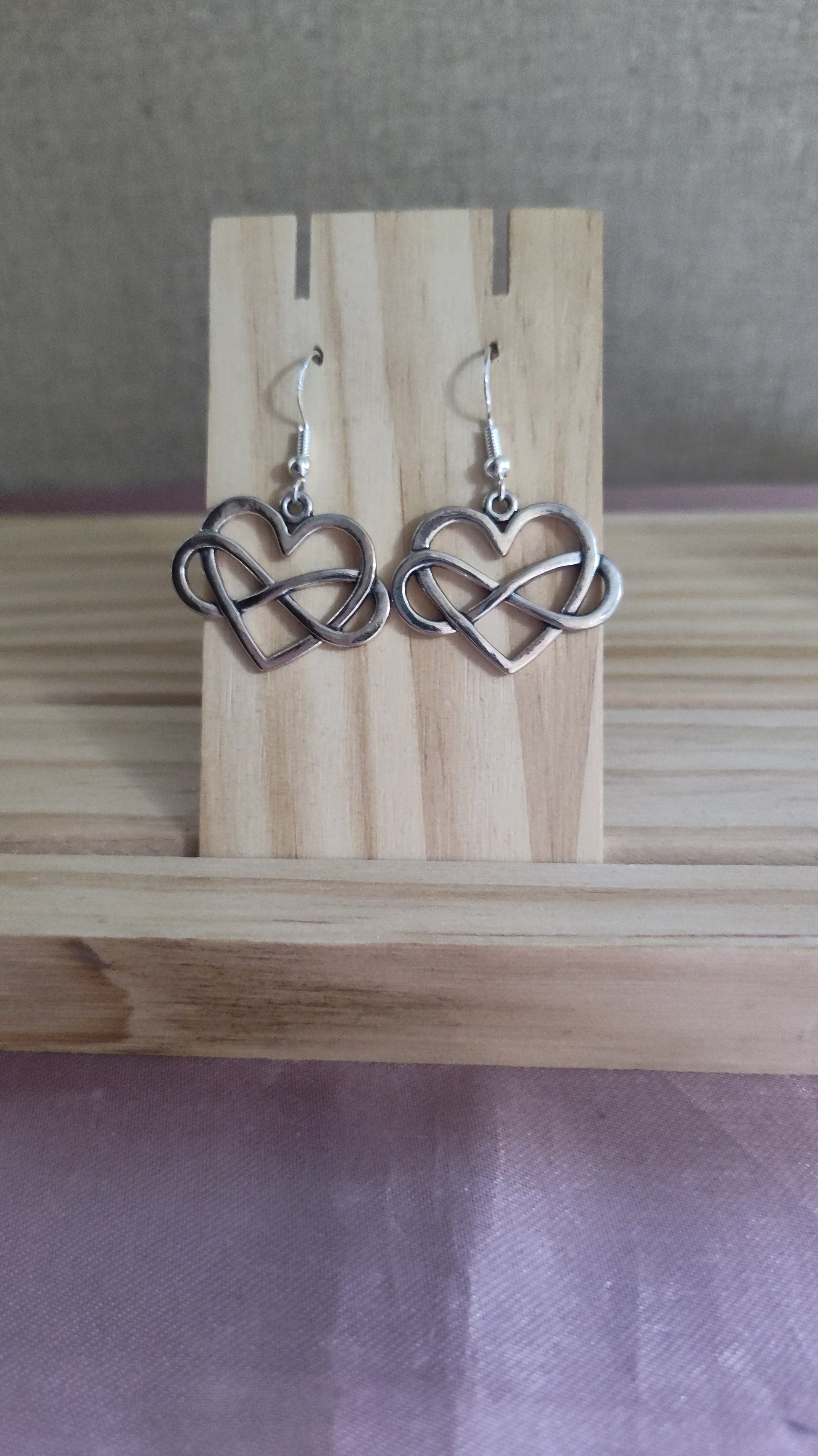 Beautiful silver heart earrings with infinity symbol. Made with sterling silver plated hooks and hypoallergenic as well.