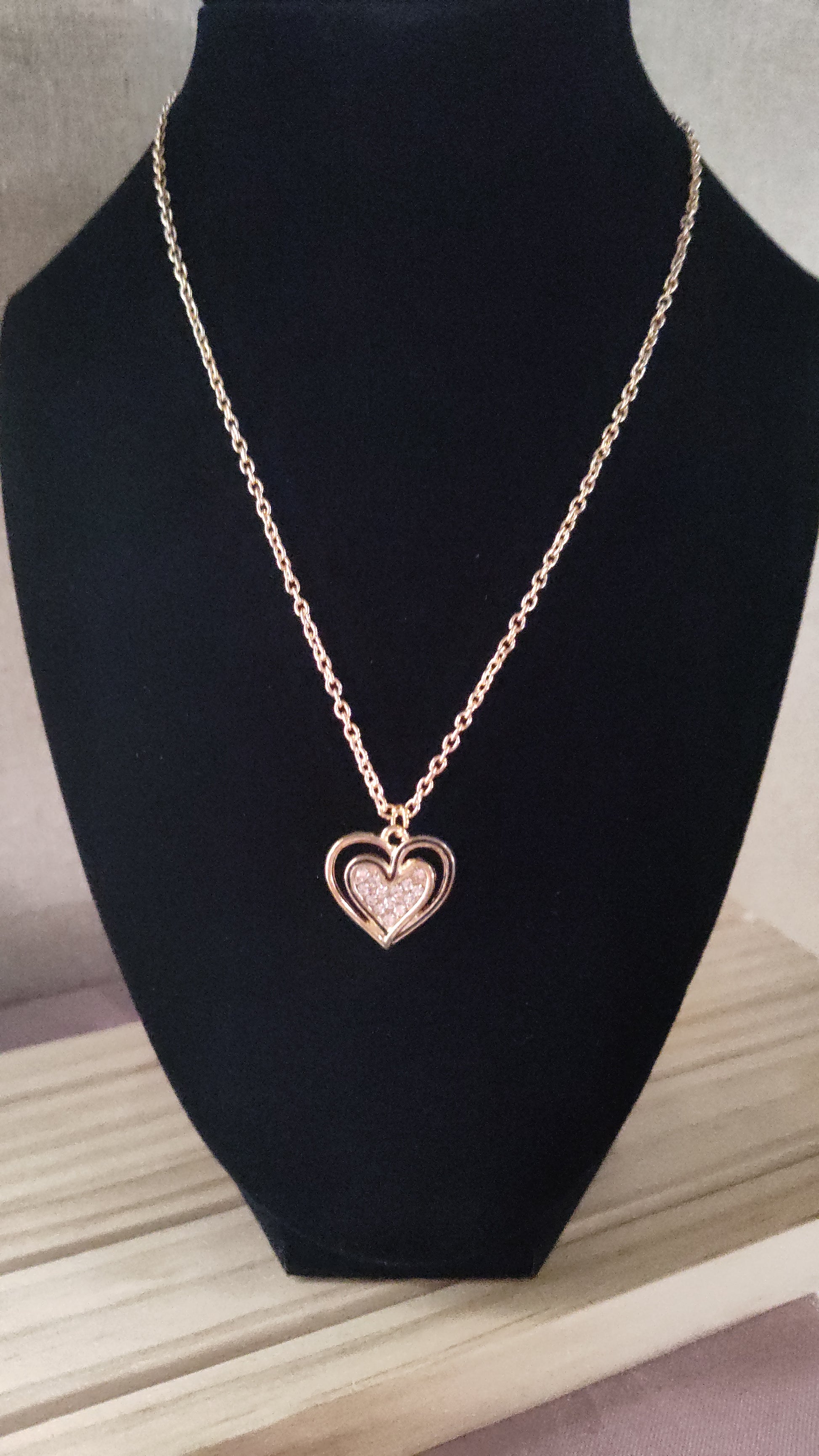 Beautiful gold heart necklace with rhinestones.