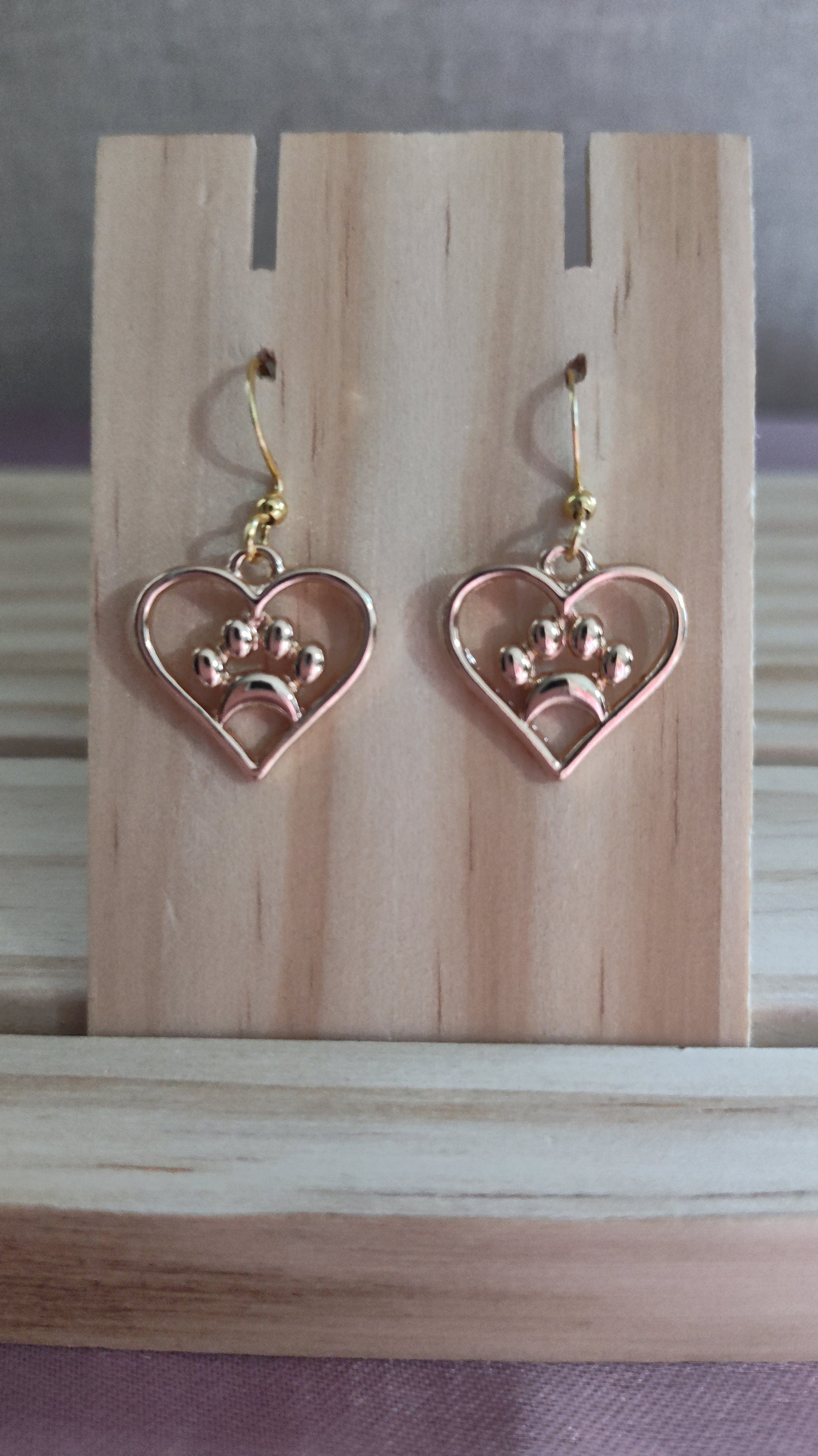 Beautiful gold heart with paw print earrings. Made with 18k gold plated hooks and hypoallergenic as well.
