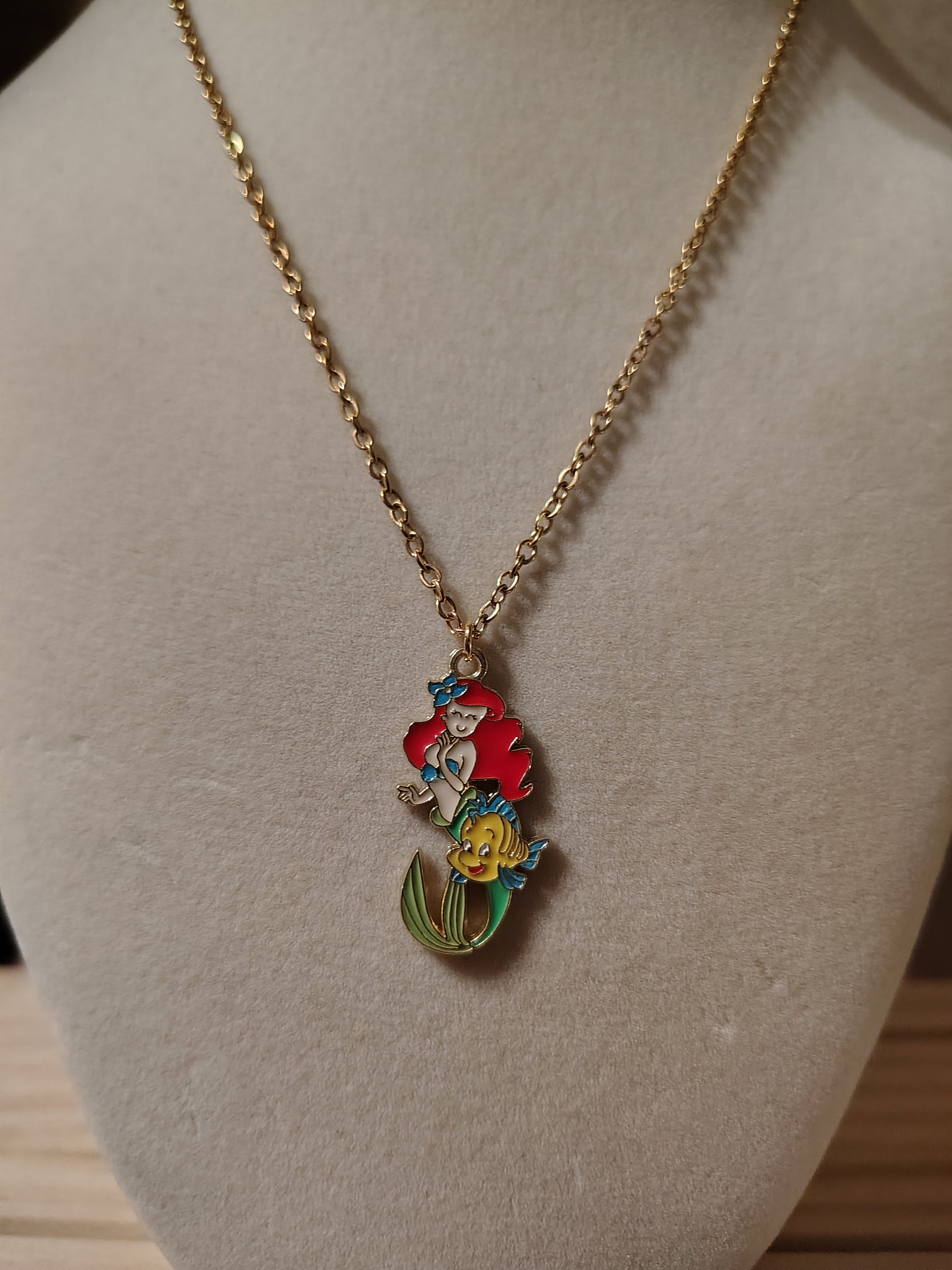 Super cute and fun Disney's Ariel and Flounder from The Little Mermaid necklace.