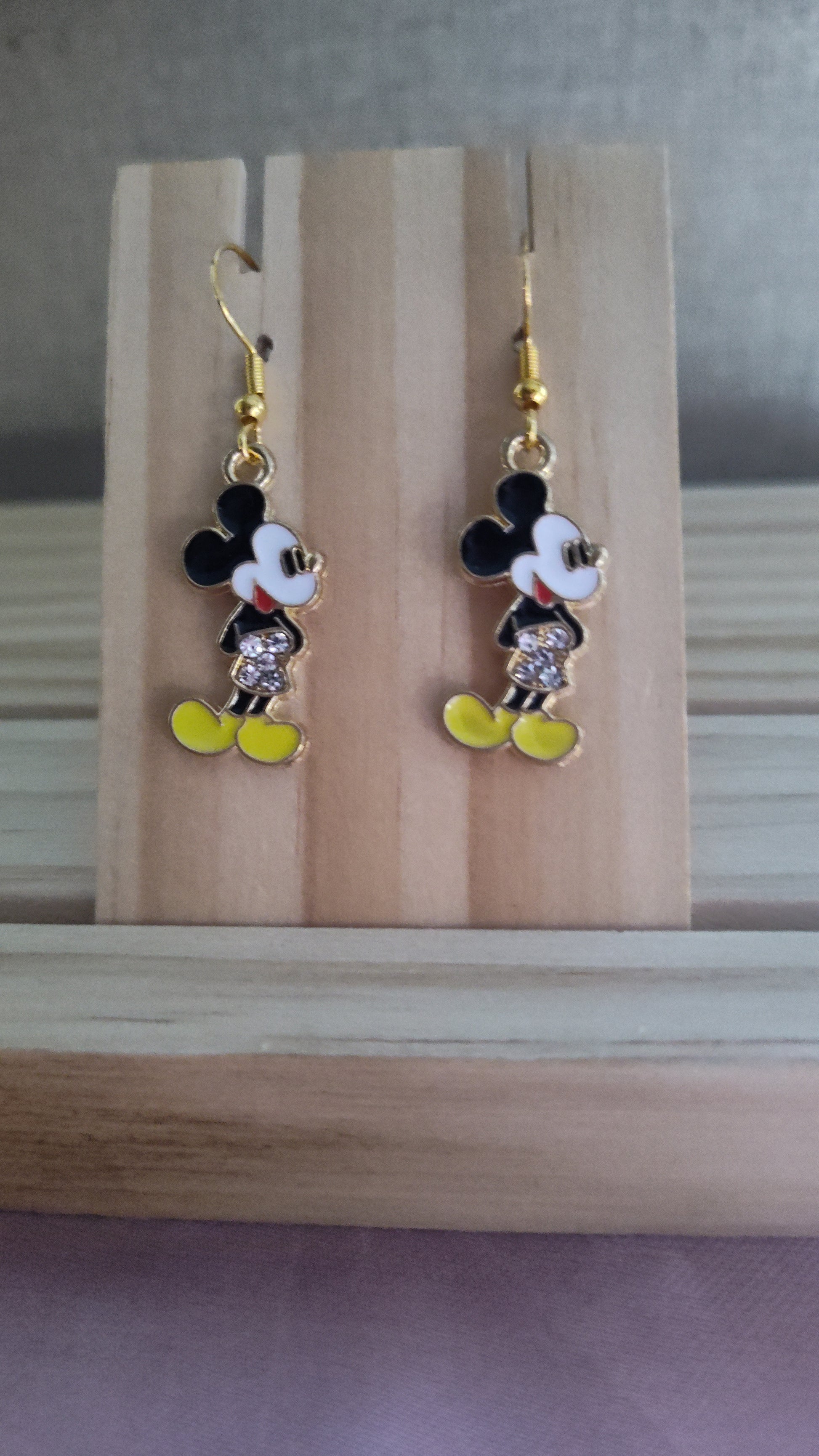 Adorable Mickey Mouse Earrings with rhinestones. Made with 18k gold sterling silver plated hooks and hypoallergenic as well.