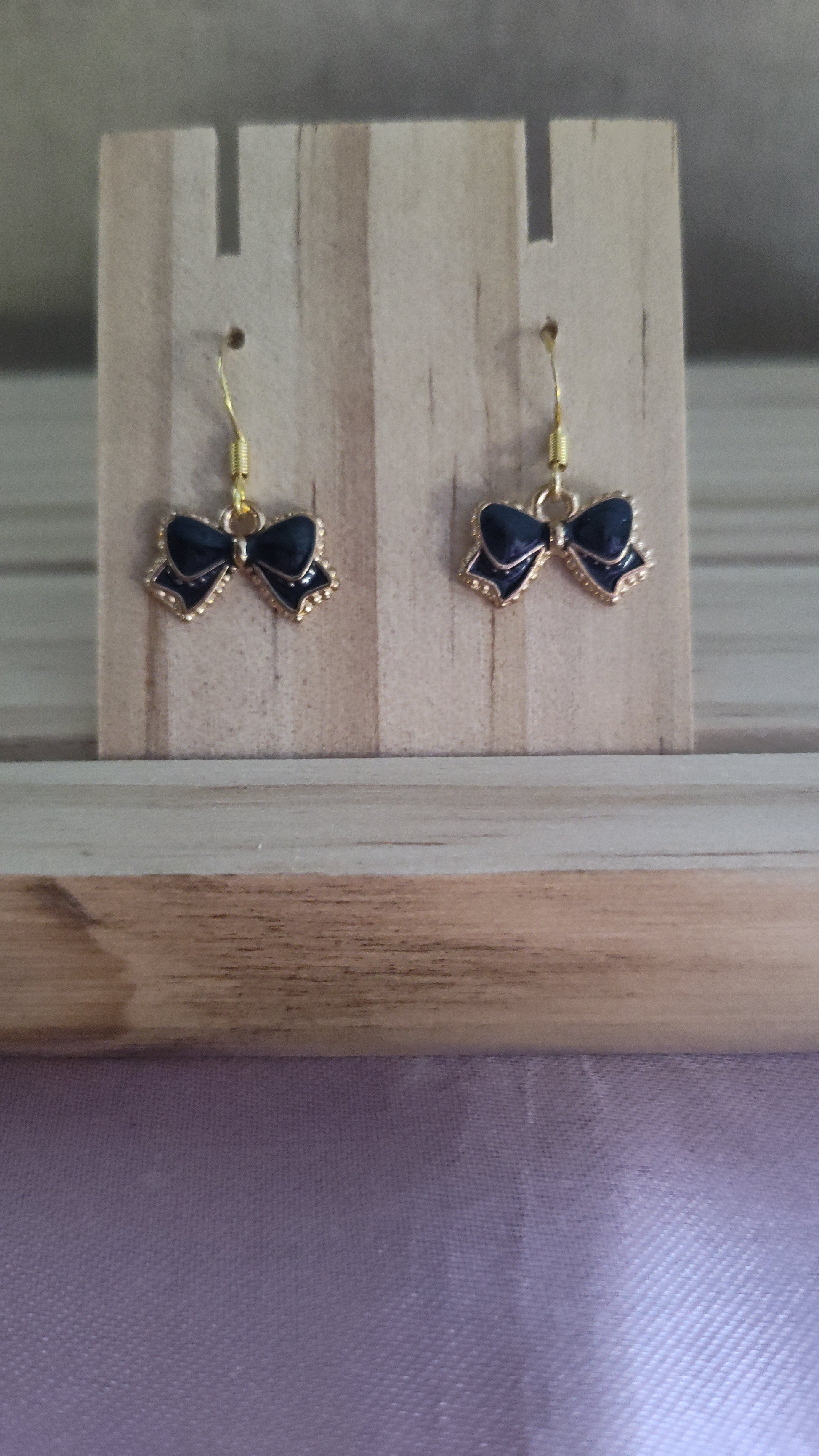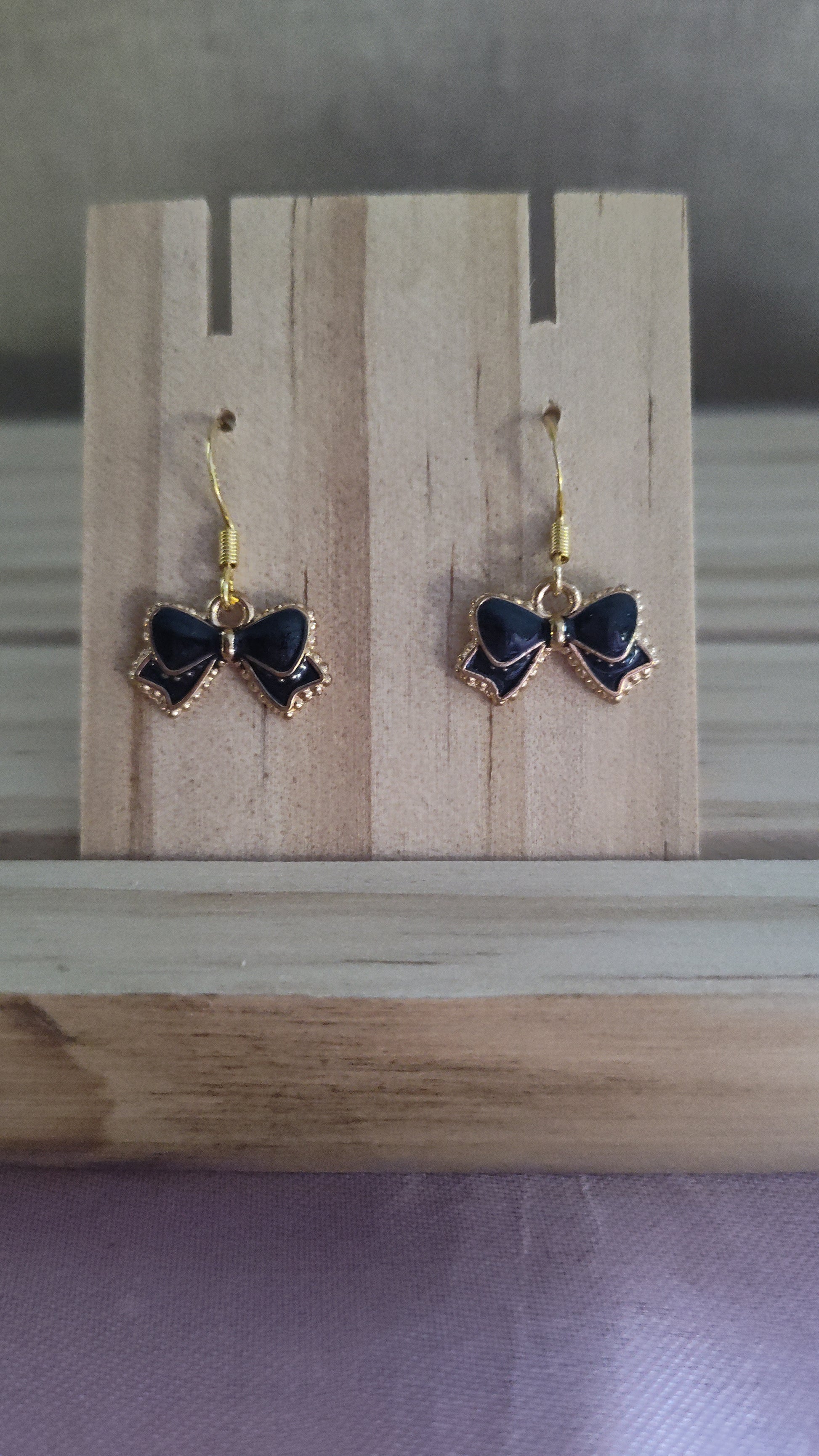 Cute and dainty gold and black bow earrings. Made with 18k gold sterling silver plated hooks and hypoallergenic as well.