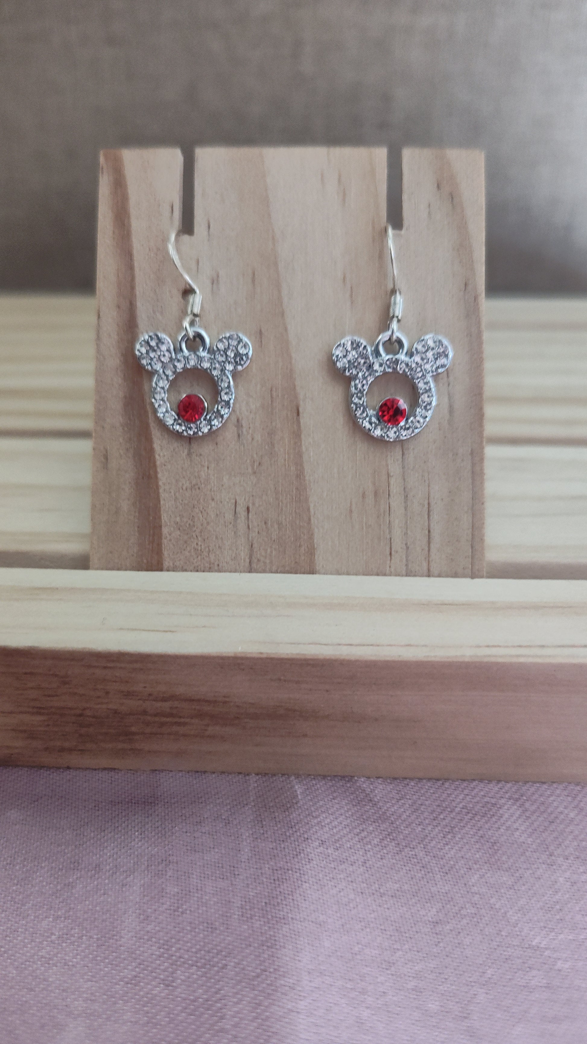 Beautiful XS silver Minnie Mouse Earrings with rhinestones. Made with sterling silver plated hooks and hypoallergenic as well.
