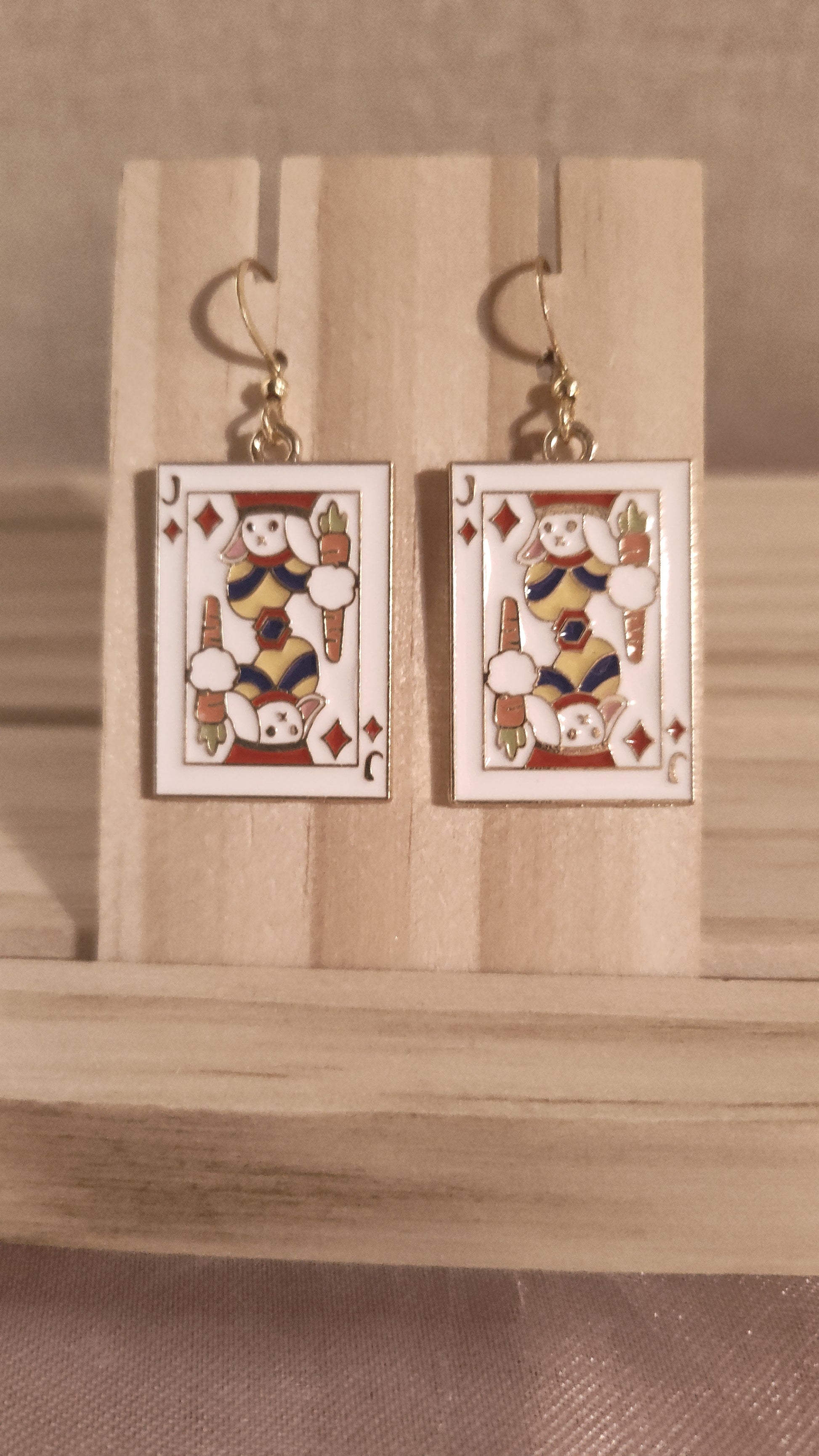 Super cute and fun large 3D Jack Poker Card Earrings. Made with 18k gold plated hooks and hypoallergenic as well.
