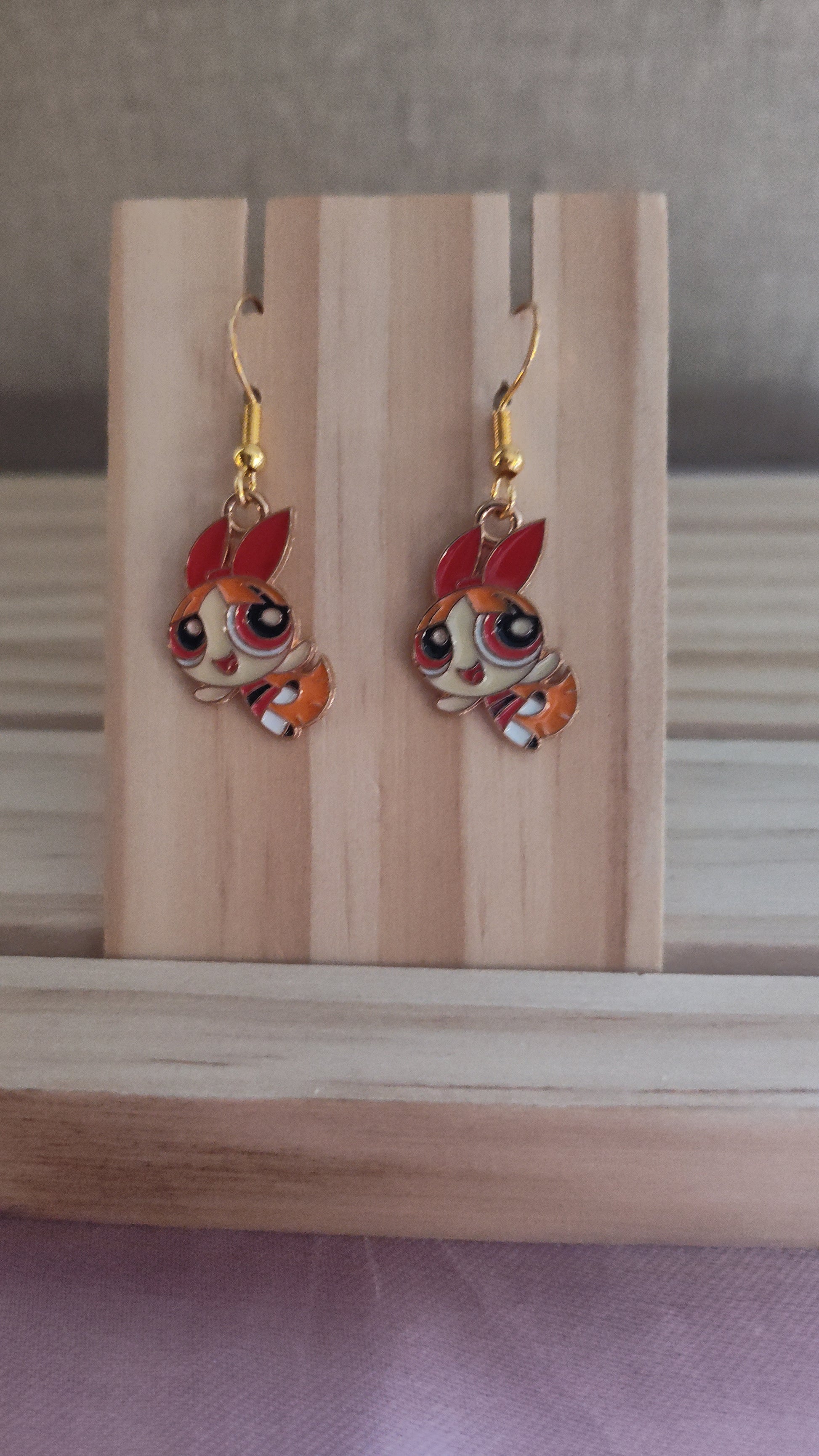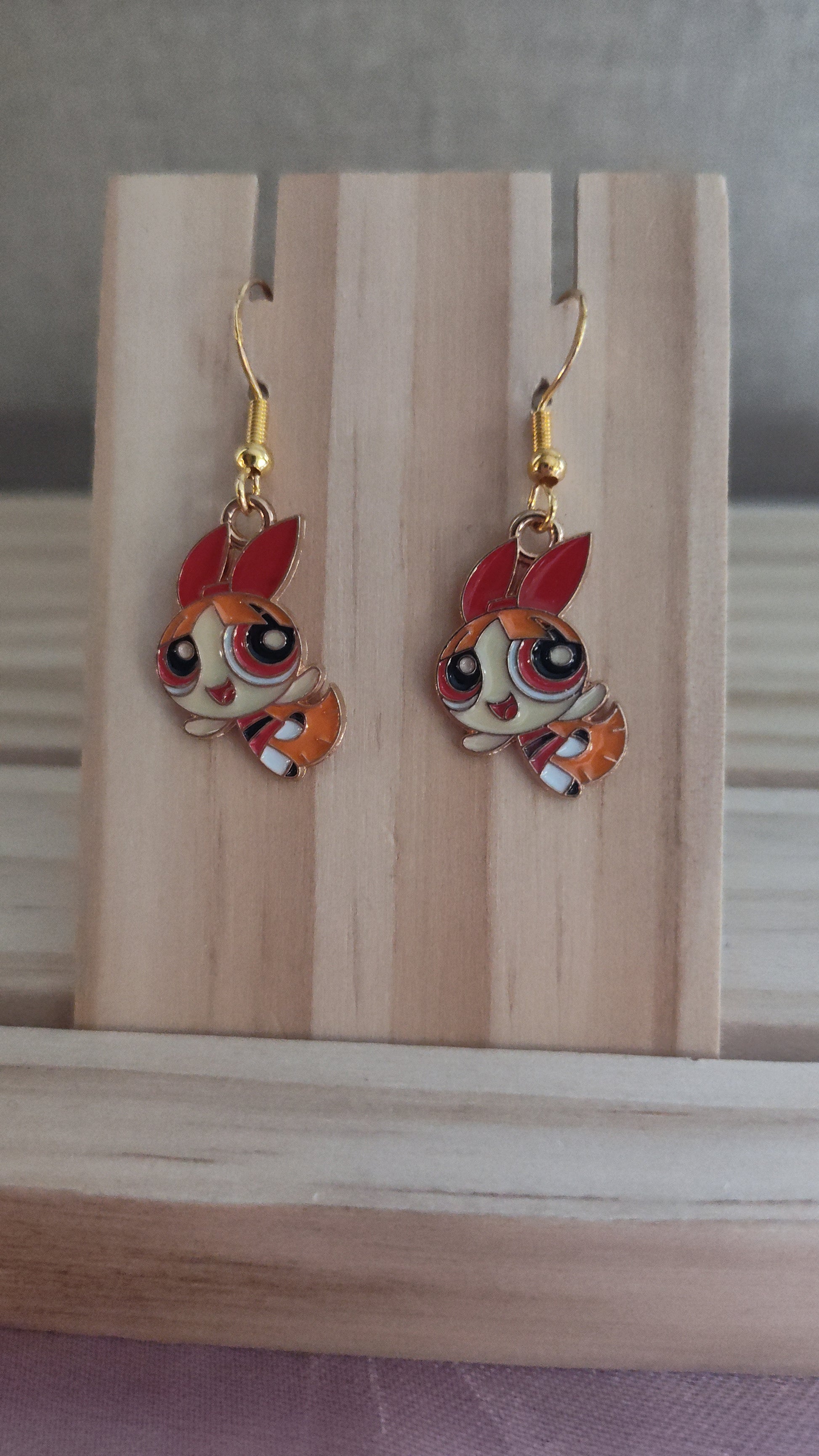 Cute Blossom from Powerpuff Girl Earrings. Made with 18k gold sterling silver plated hooks and hypoallergenic as well.