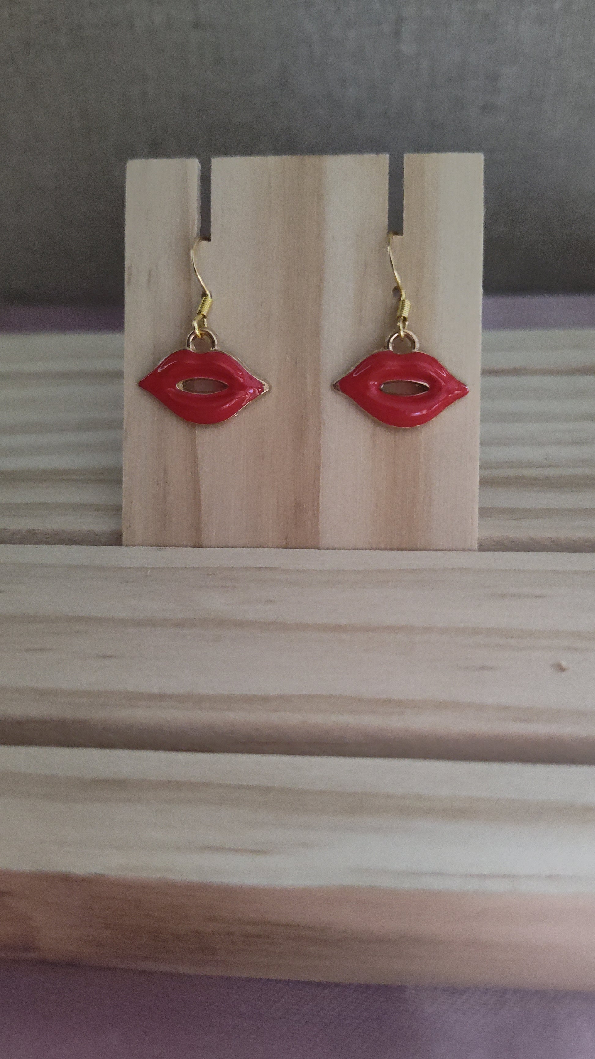 Cute and fun red lips earrings. Made with 18k gold sterling silver plated hooks and hypoallergenic as well.