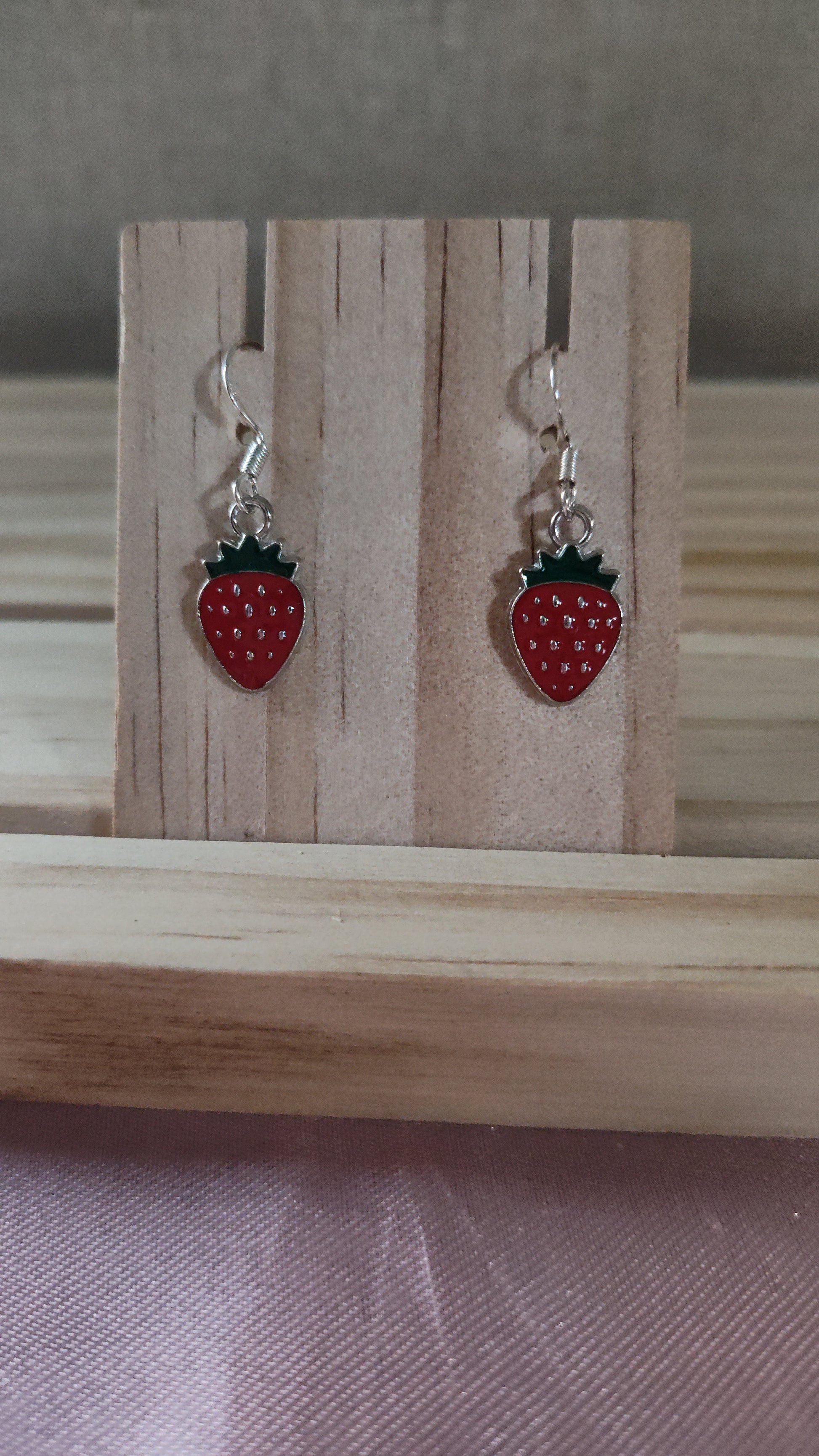 Cute strawberry earrings. Made with sterling silver plated hooks and hypoallergenic as well.