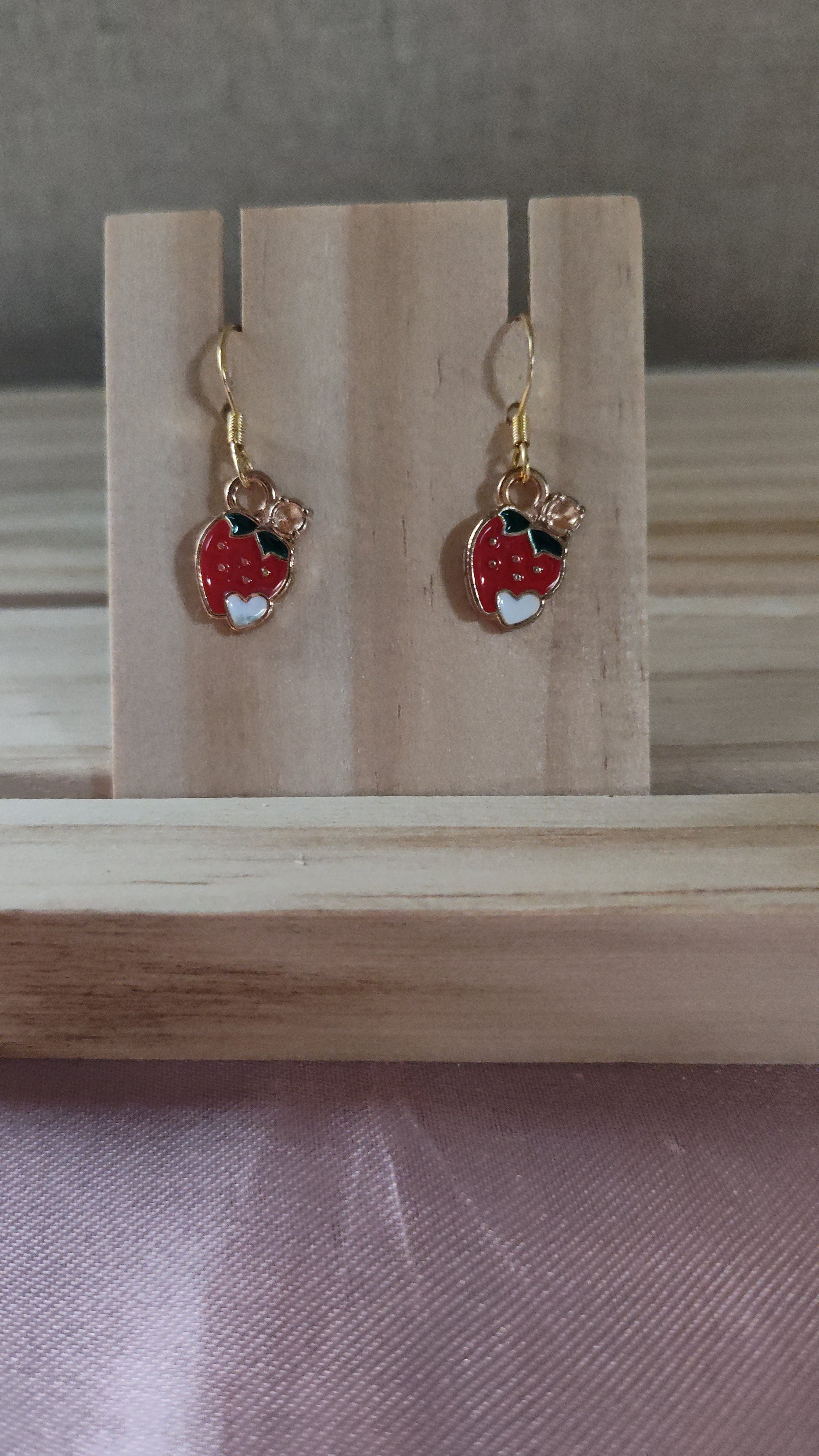 Cute strawberry earrings, made with 18k gold sterling silver plated hooks and hypoallergenic as well.