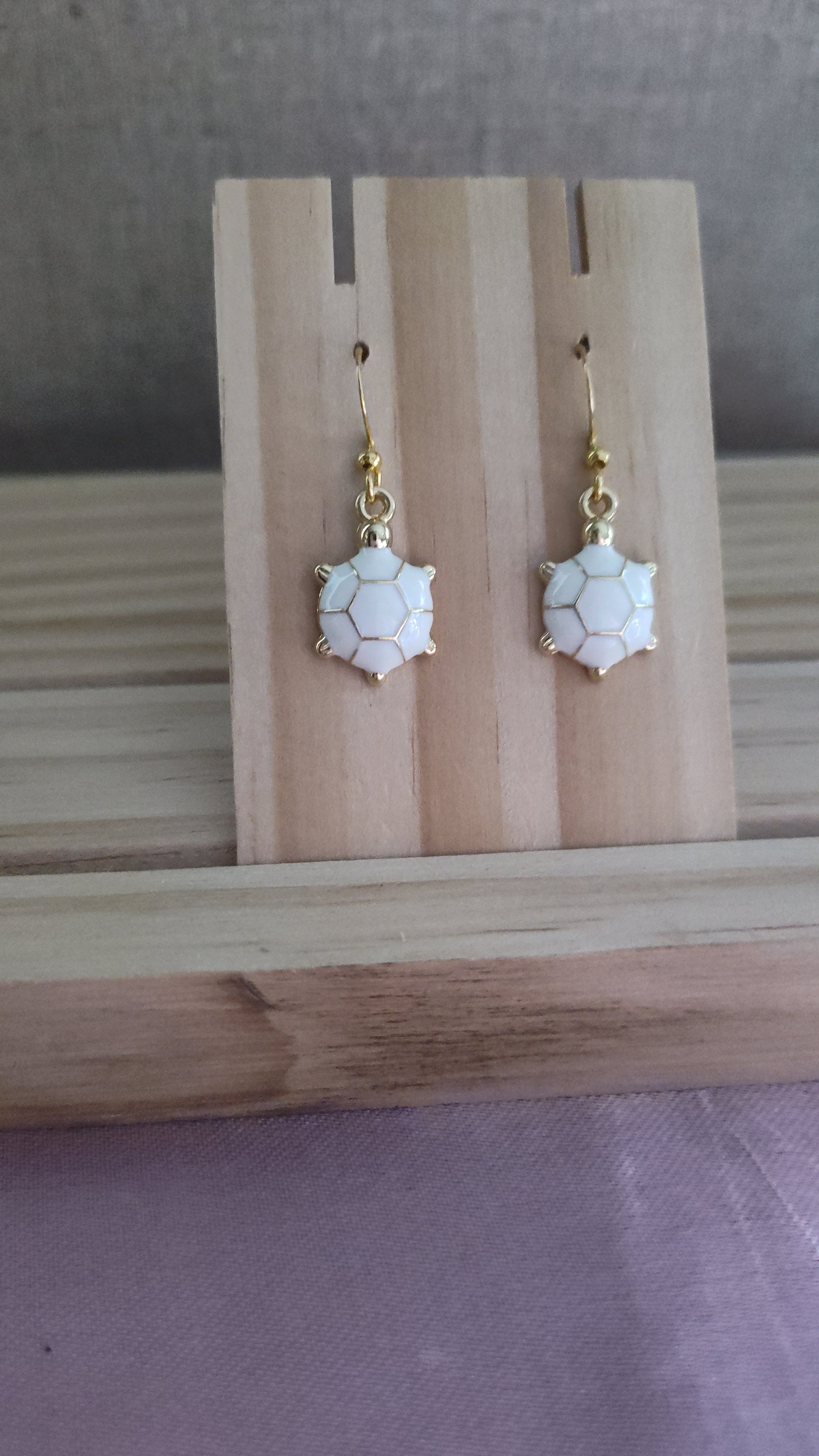 Cute white and gold turtle earrings. Made with 18k gold sterling silver plated hooks and hypoallergenic as well.