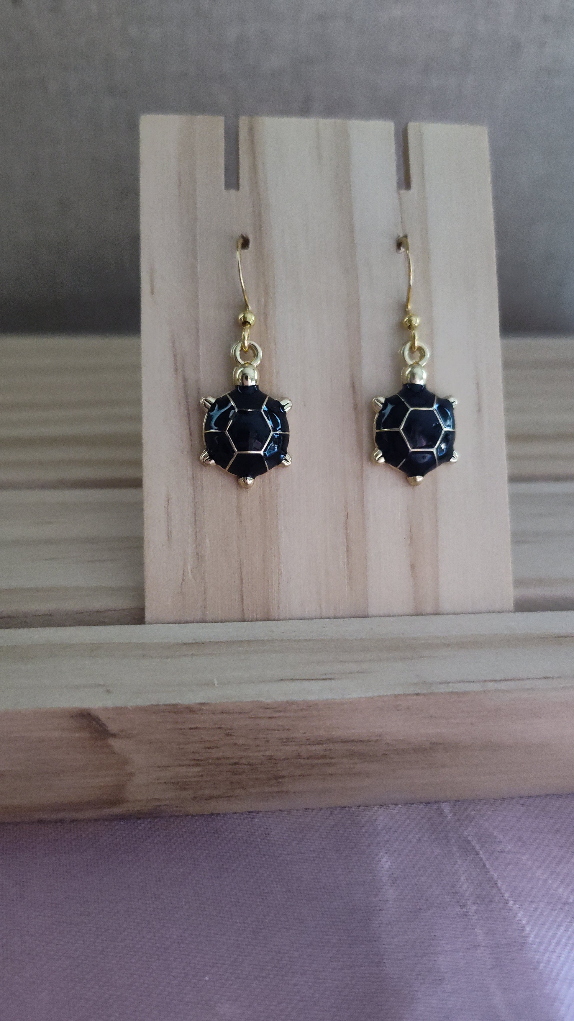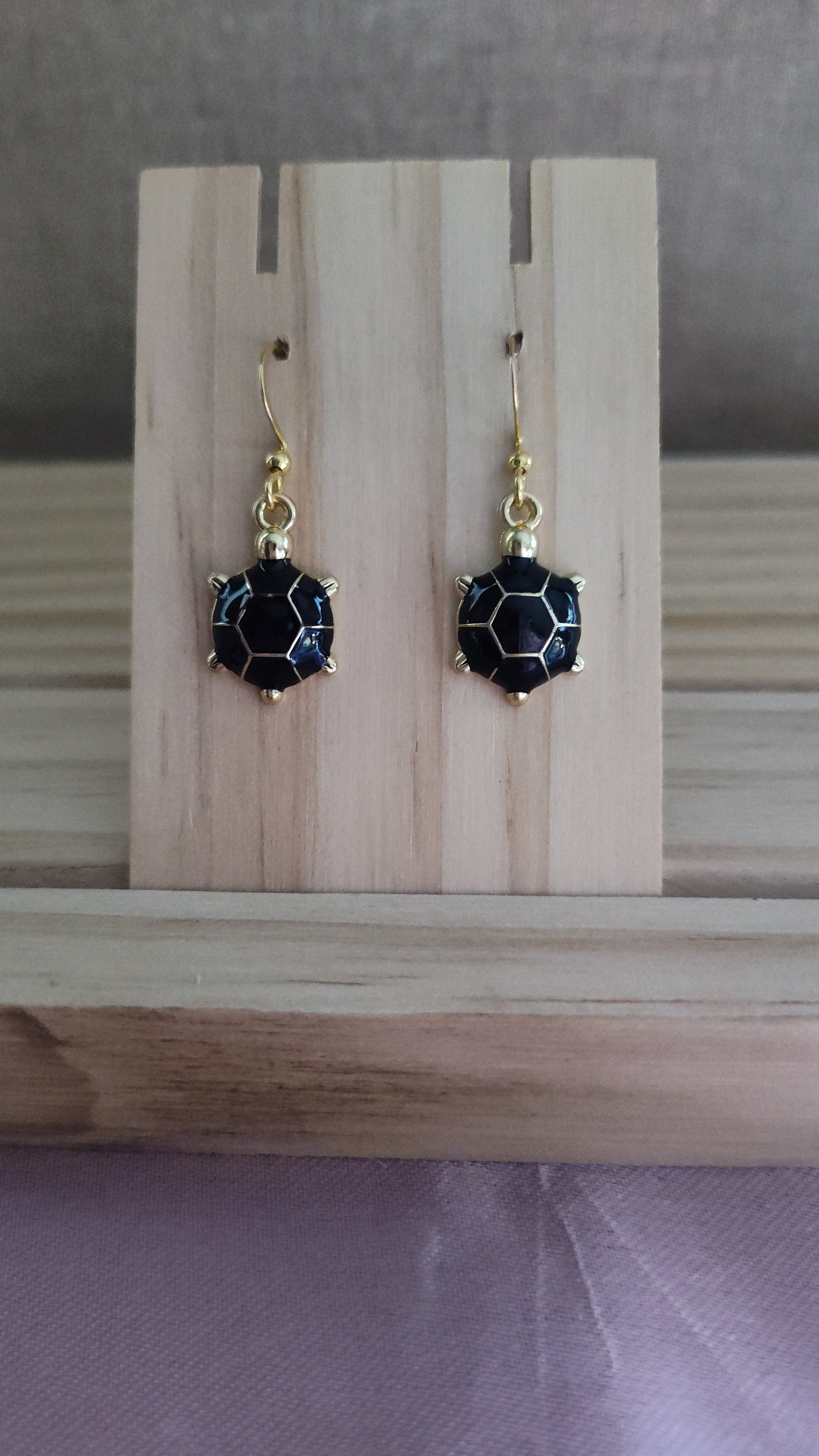 Cute black and gold turtle earrings. Made with 18k gold sterling silver plated hooks and hypoallergenic as well.