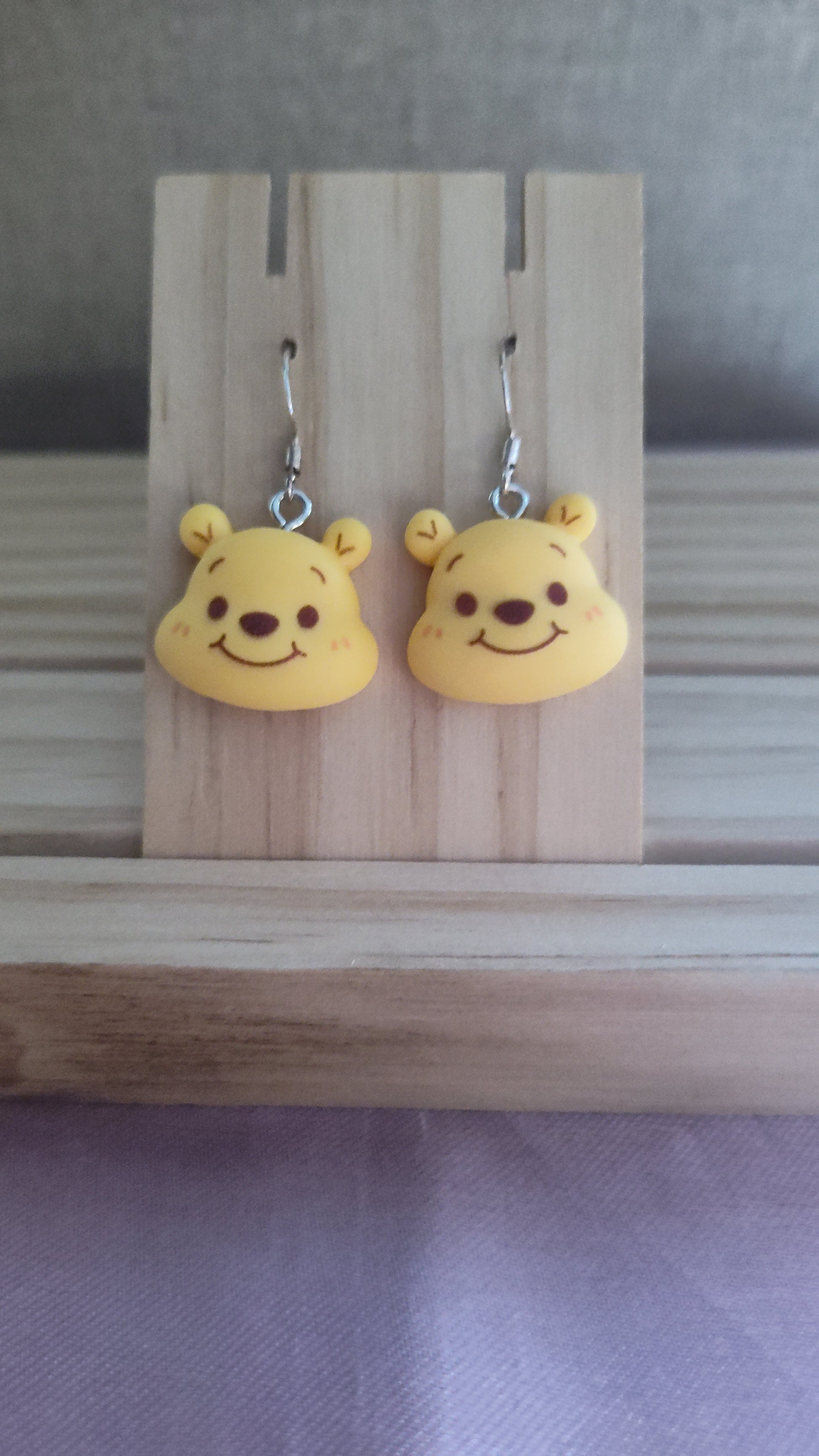 Cute 3D Winnie the Pooh face earrings. Made with sterling silver plated hooks and hypoallergenic as well.